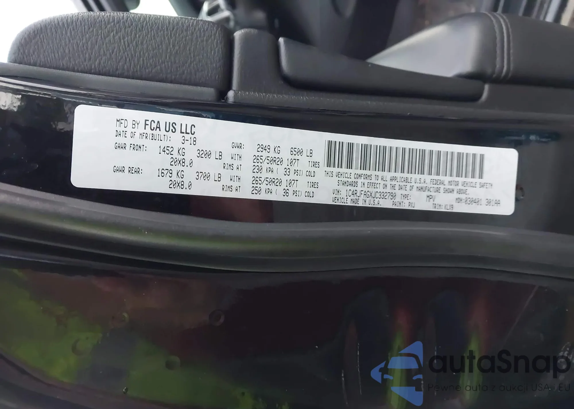 • VIN 1C4RJFAGXJC332790