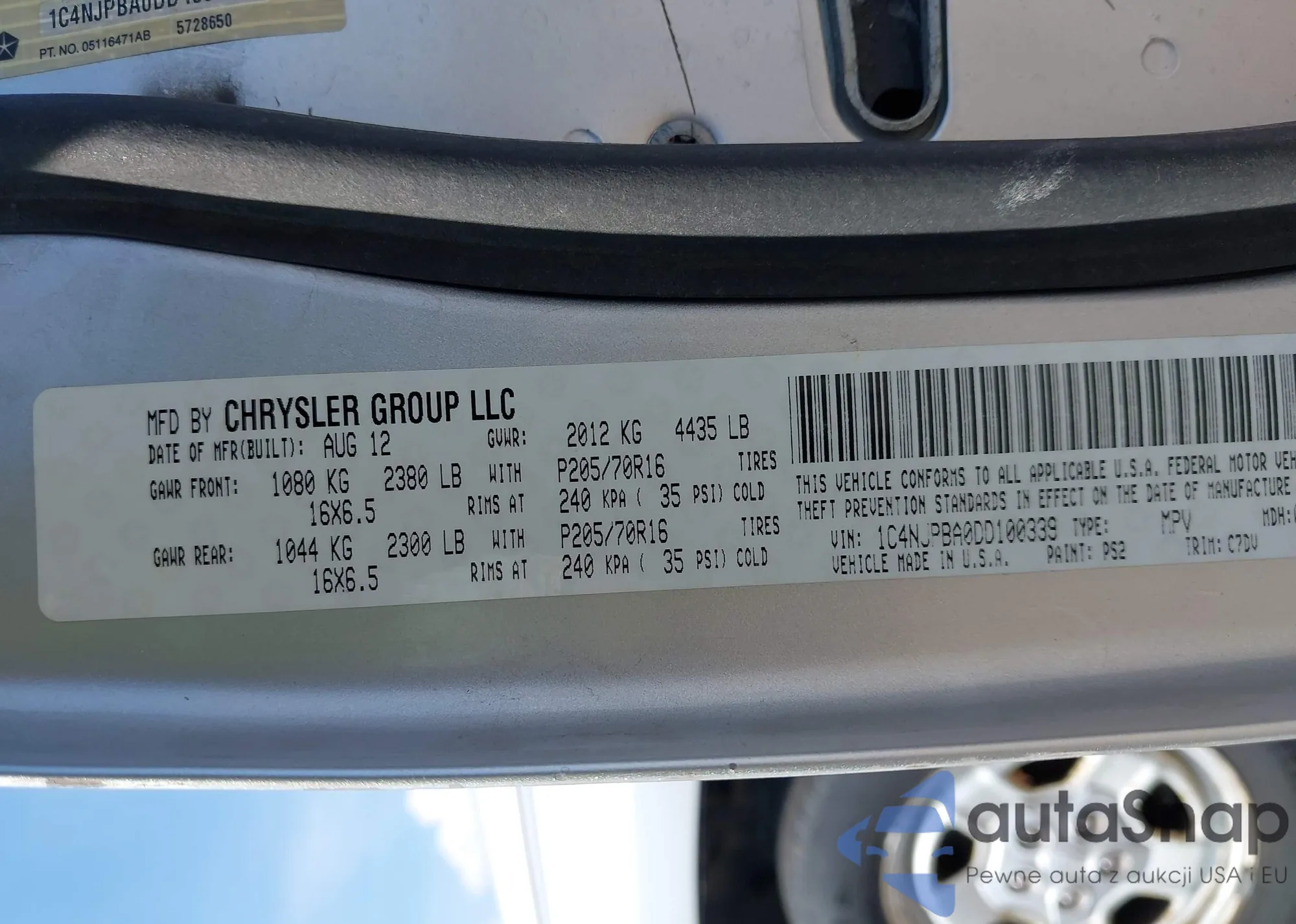 • VIN 1C4NJPBA0DD100339