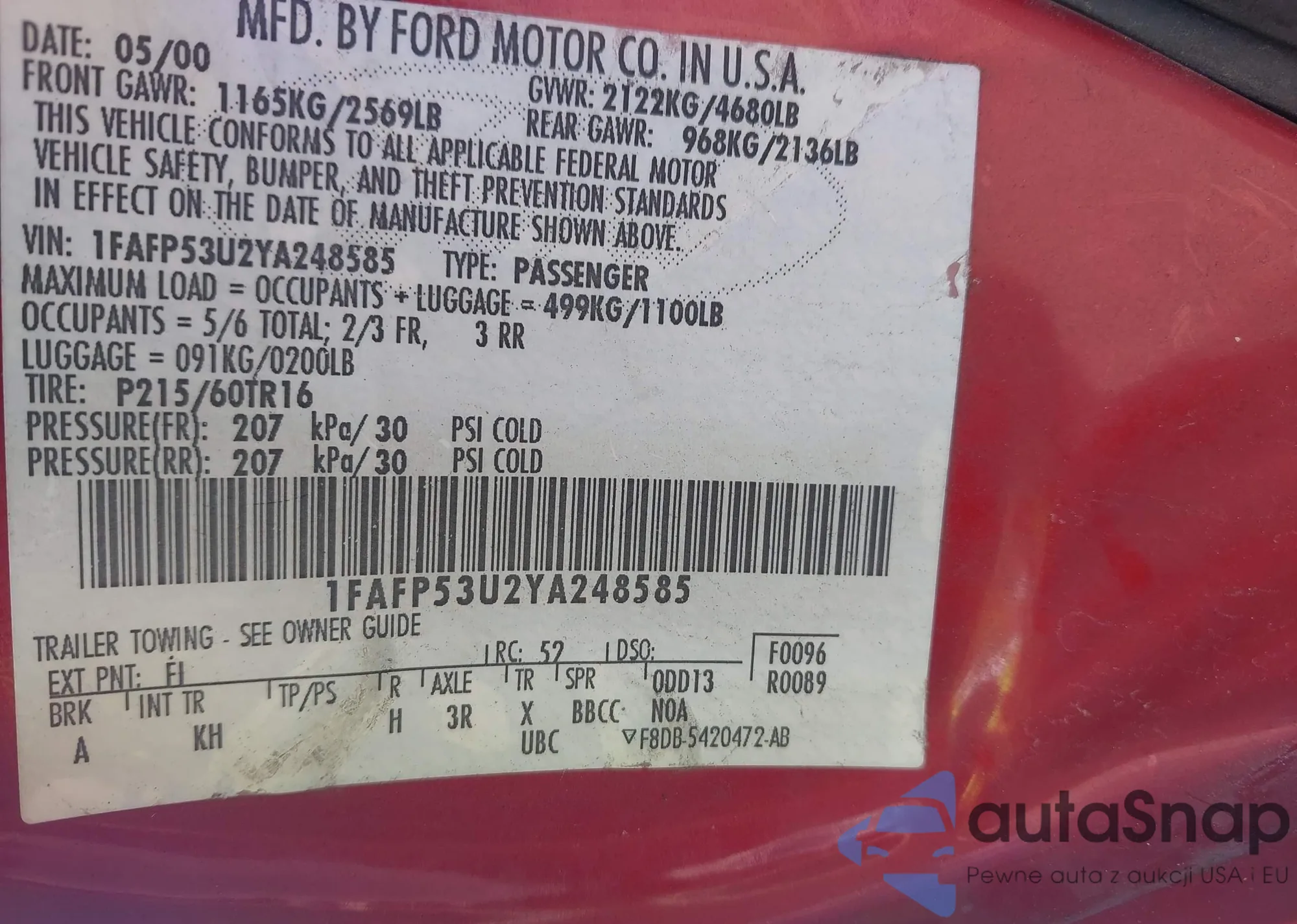 LOT: 43398644 VIN: 1FAFP34N85W231347