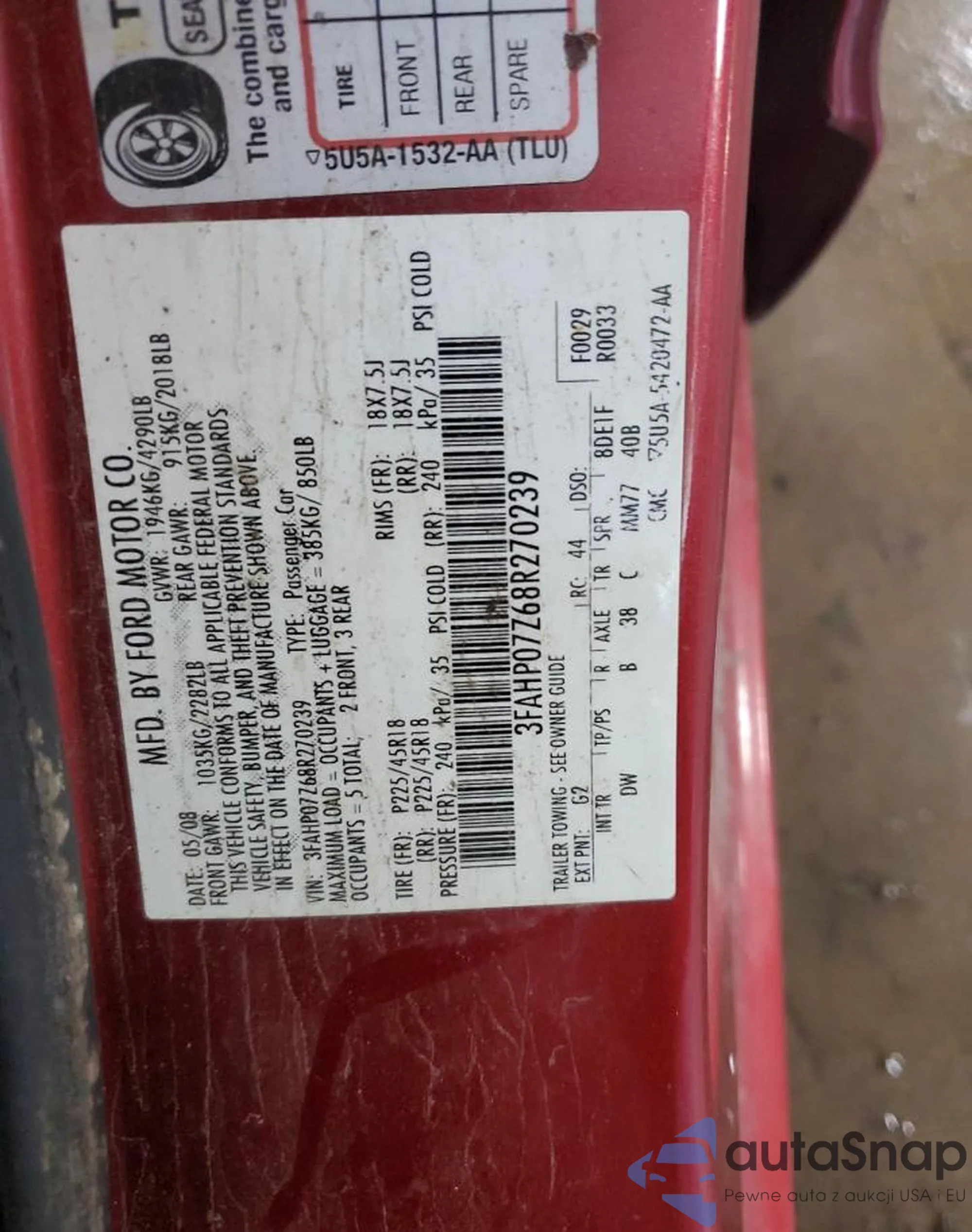 • VIN 3FAHP07Z68R270239