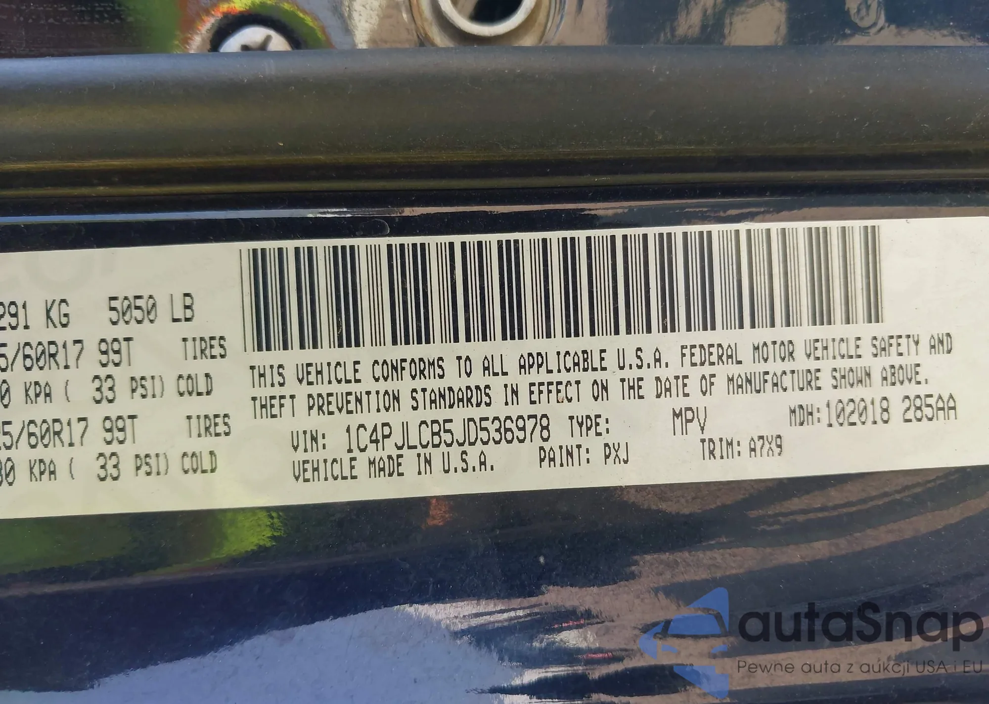 • VIN 1C4PJLCB5JD536978