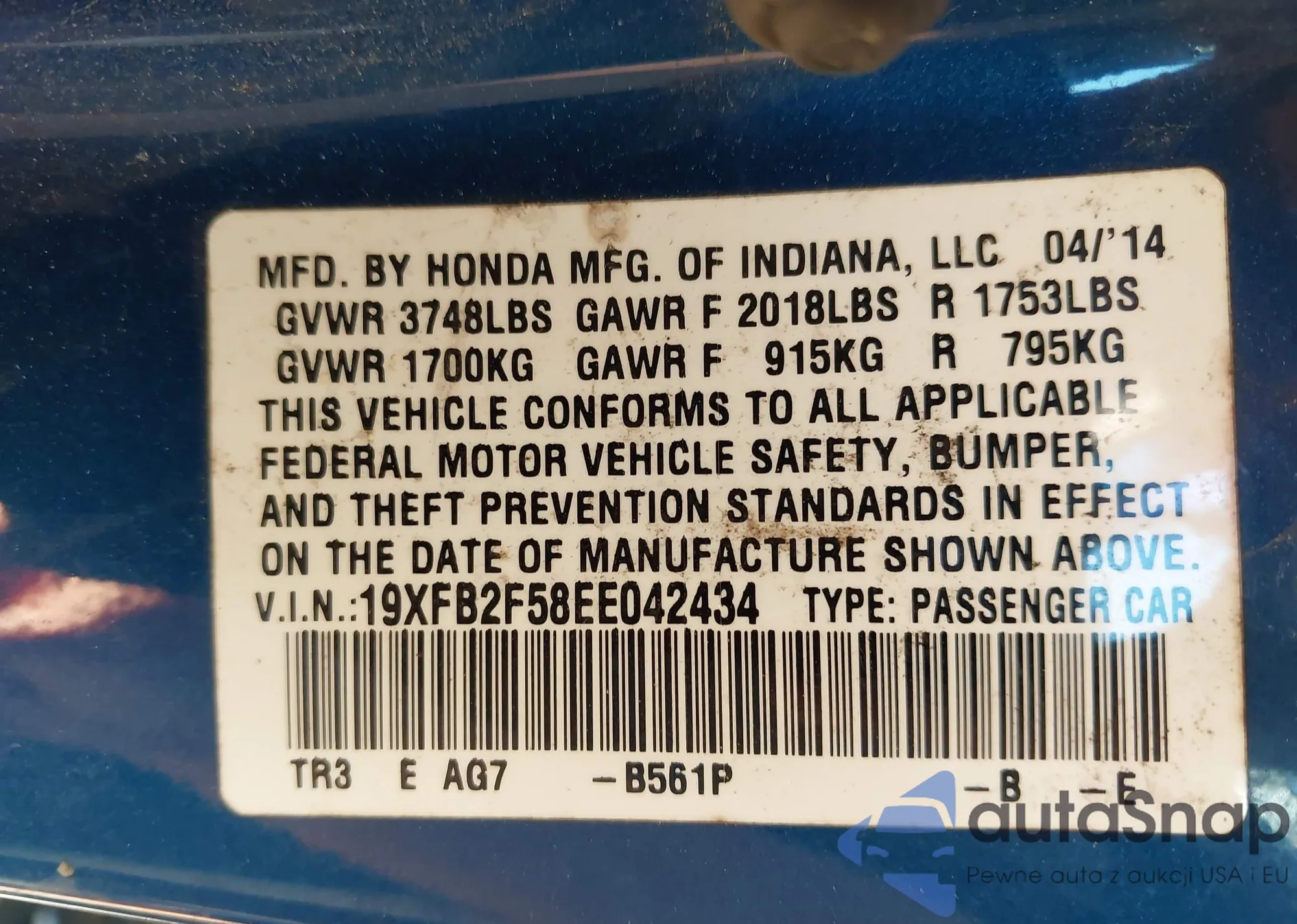 LOT: 43338659 VIN: 1FMCU03168KC91444