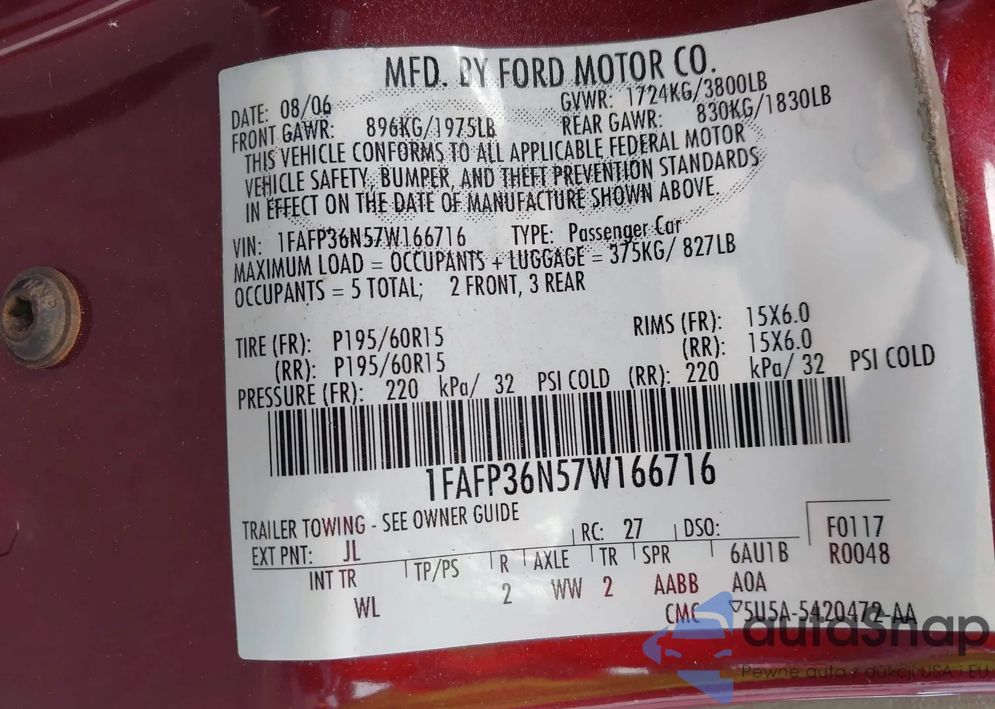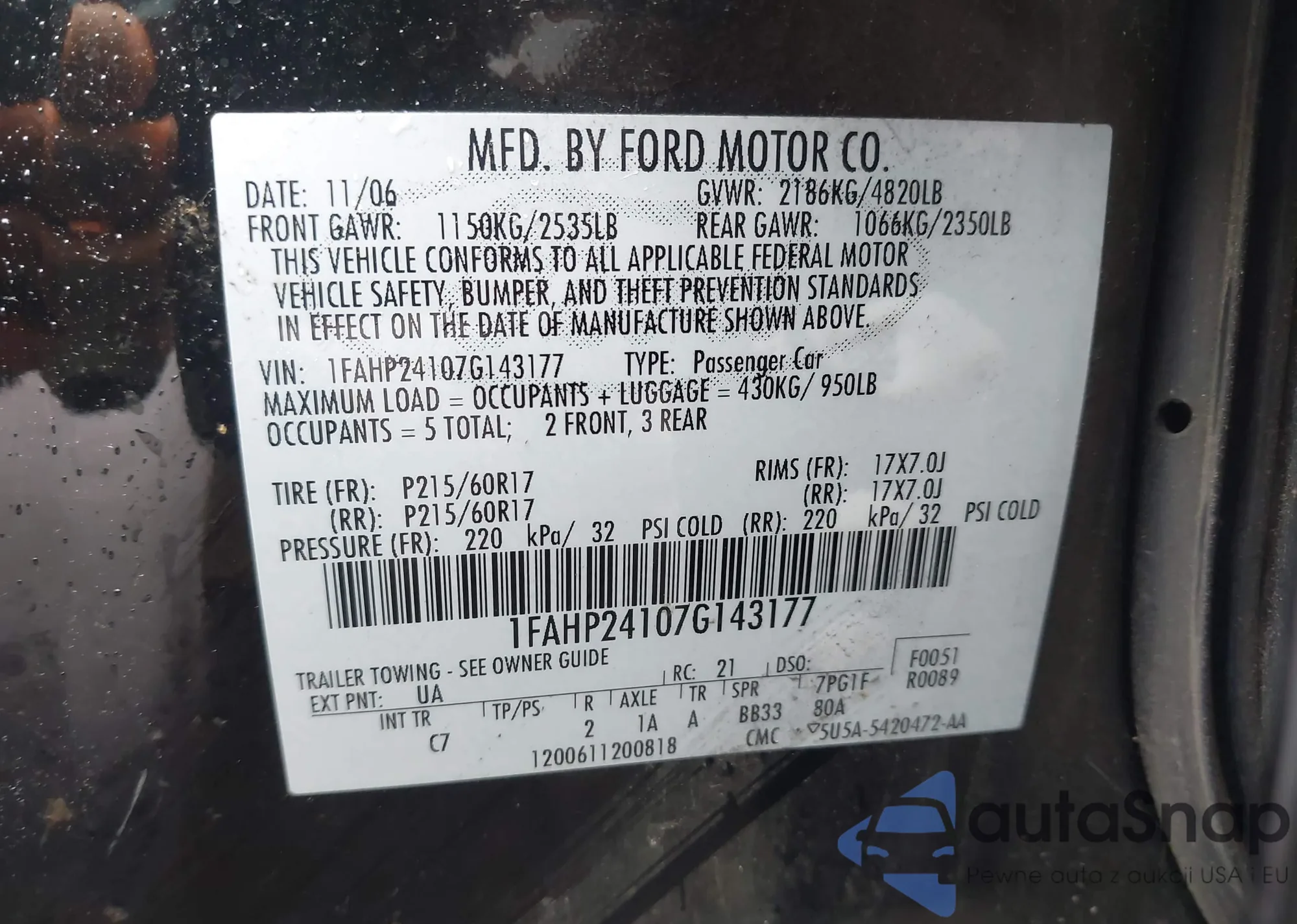 • VIN 1FAHP24107G143177