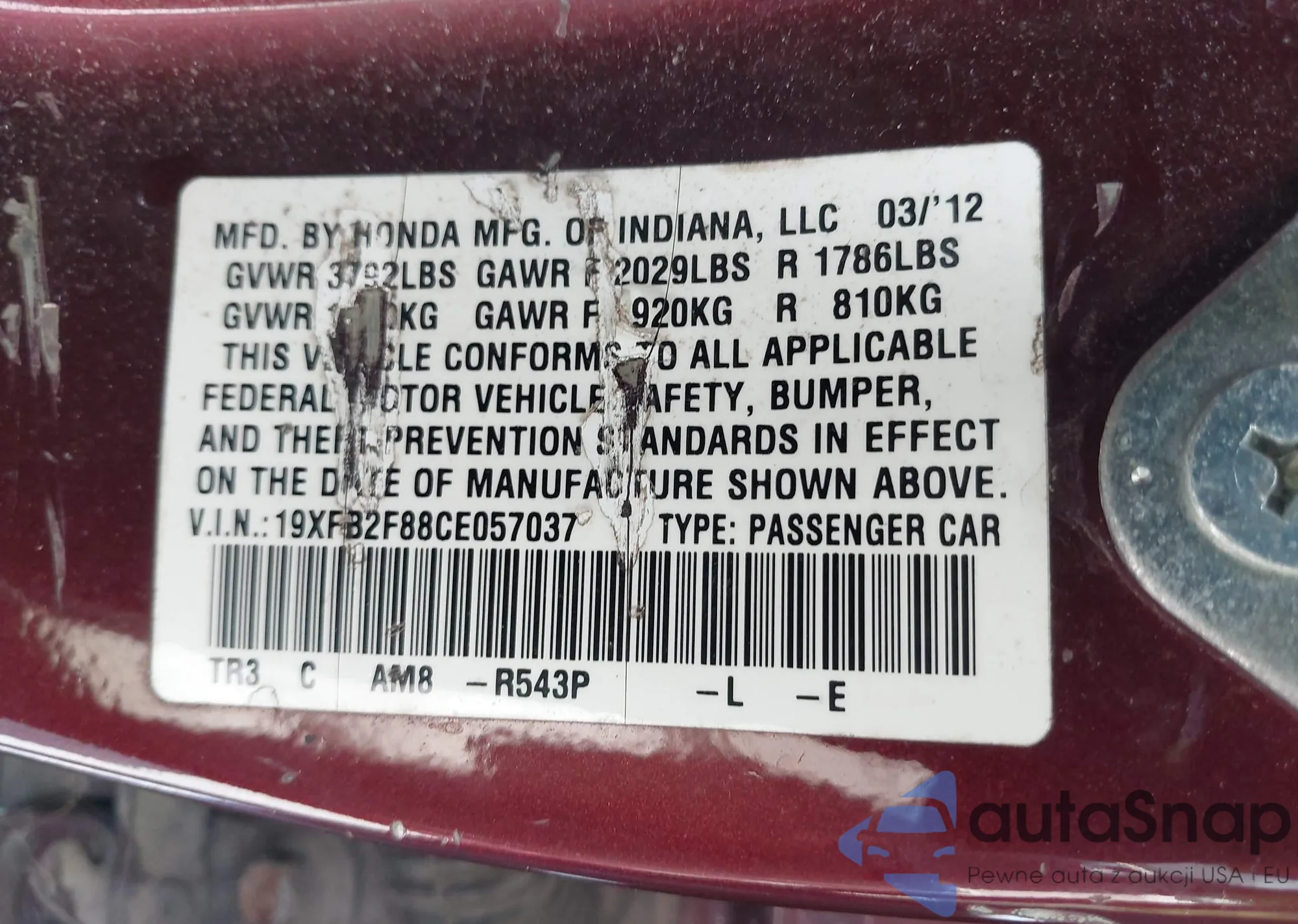 • VIN 19XFB2F88CE057037