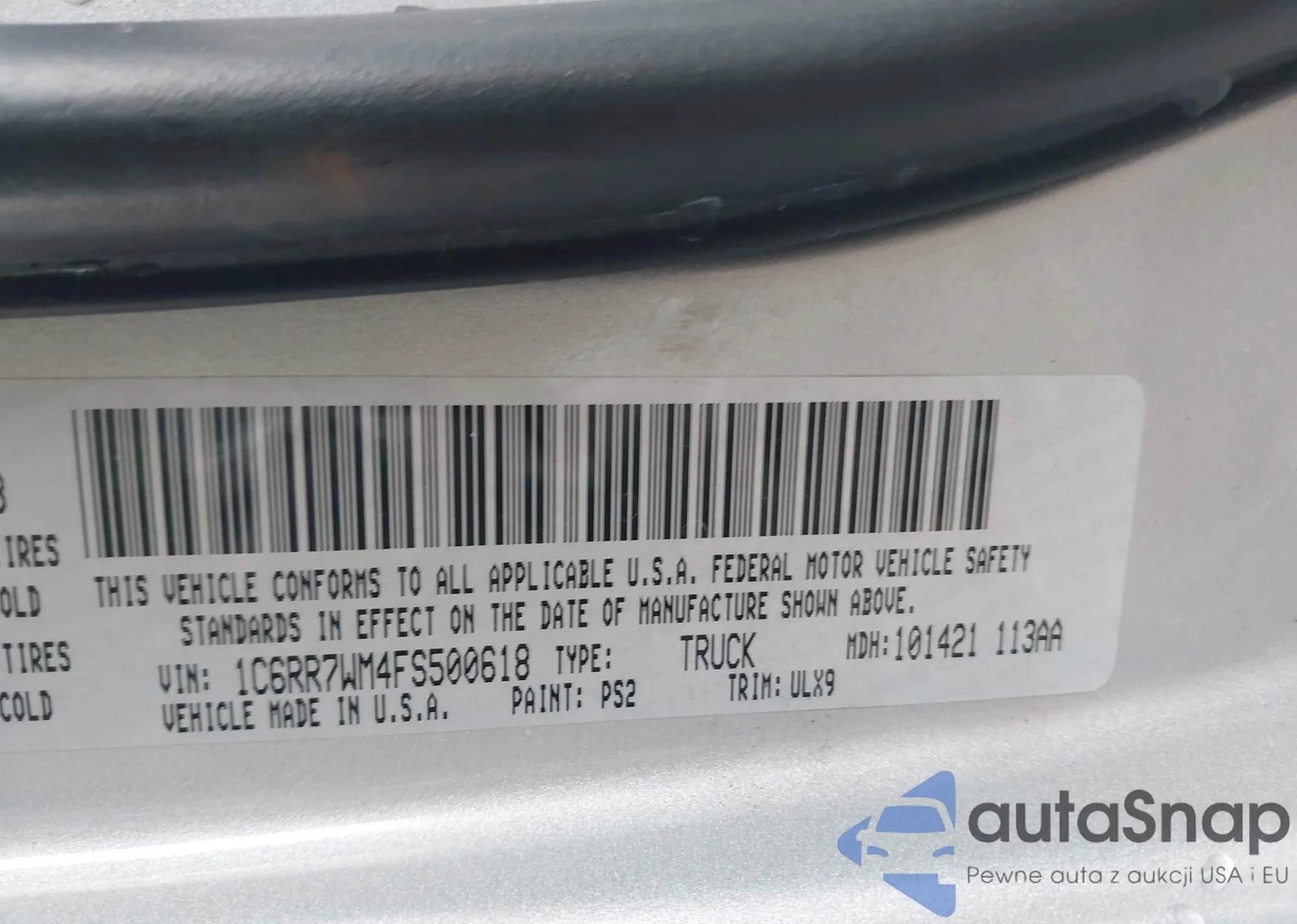 • VIN 1C6RR7WM4FS500618