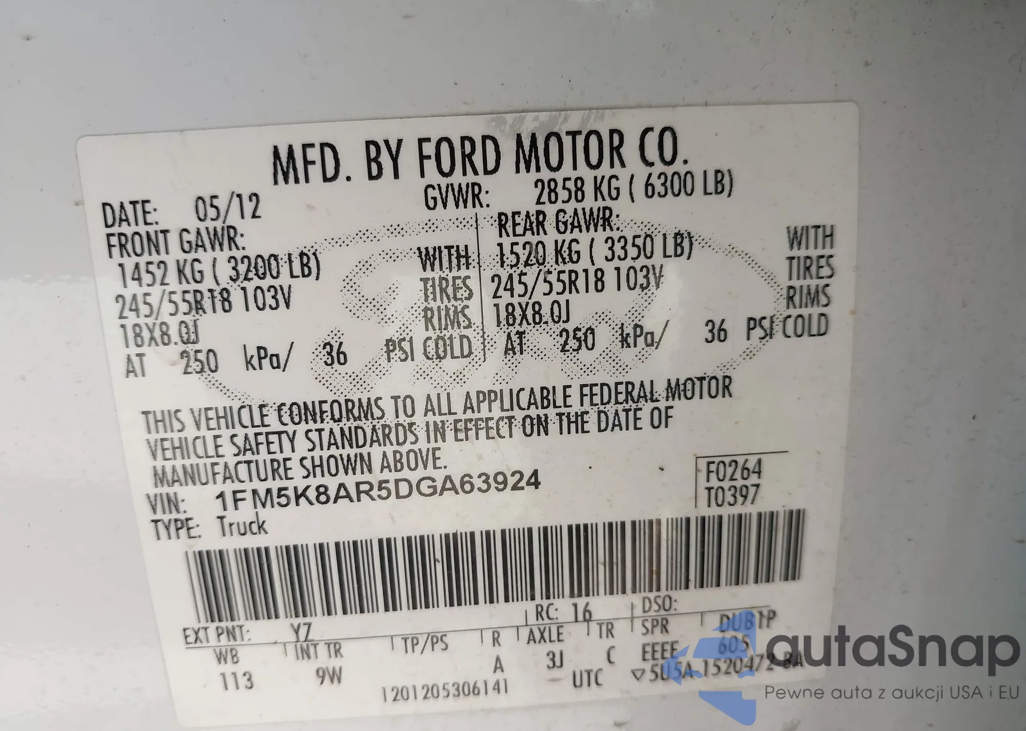 • VIN 1FM5K8AR5DGA63924