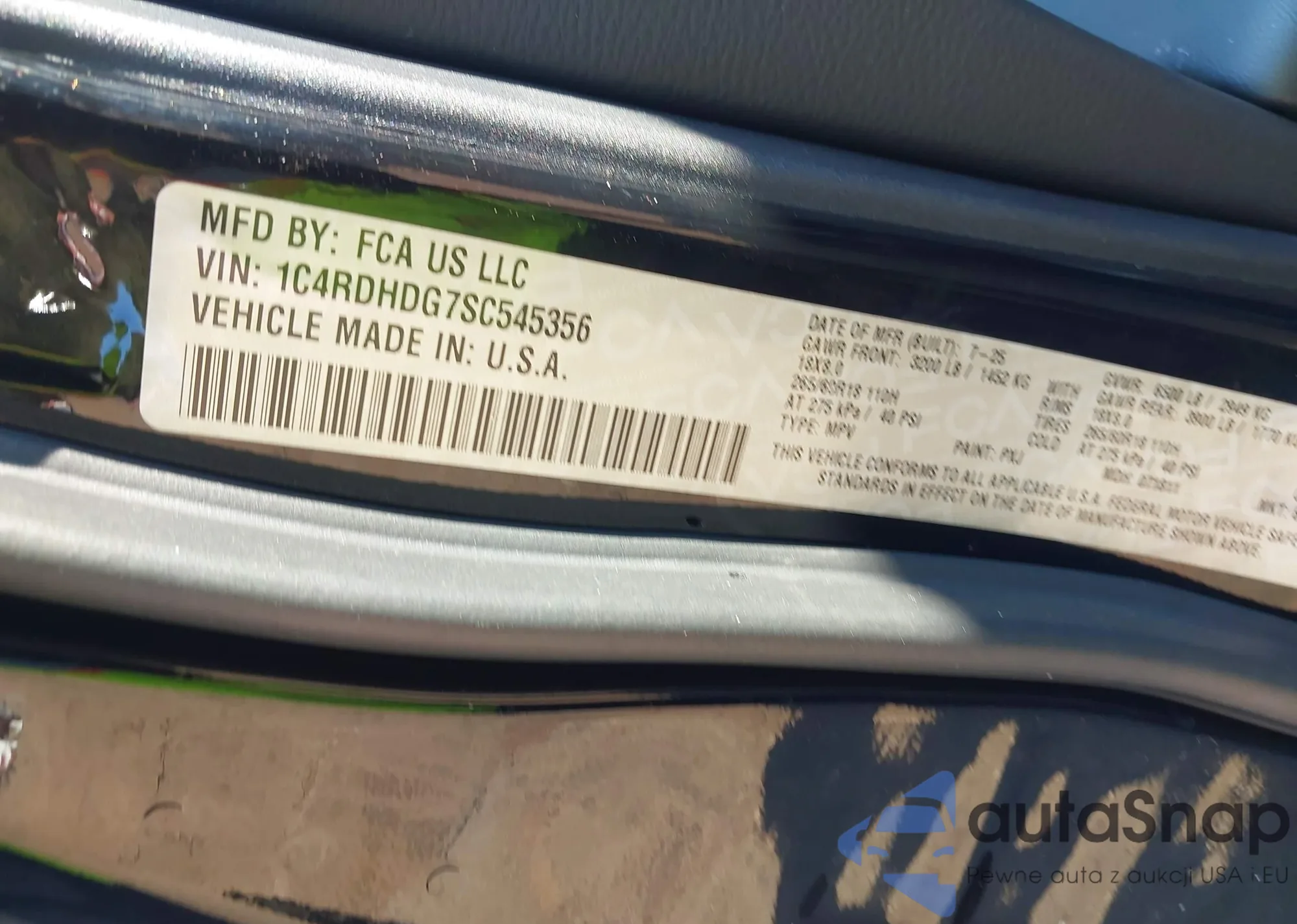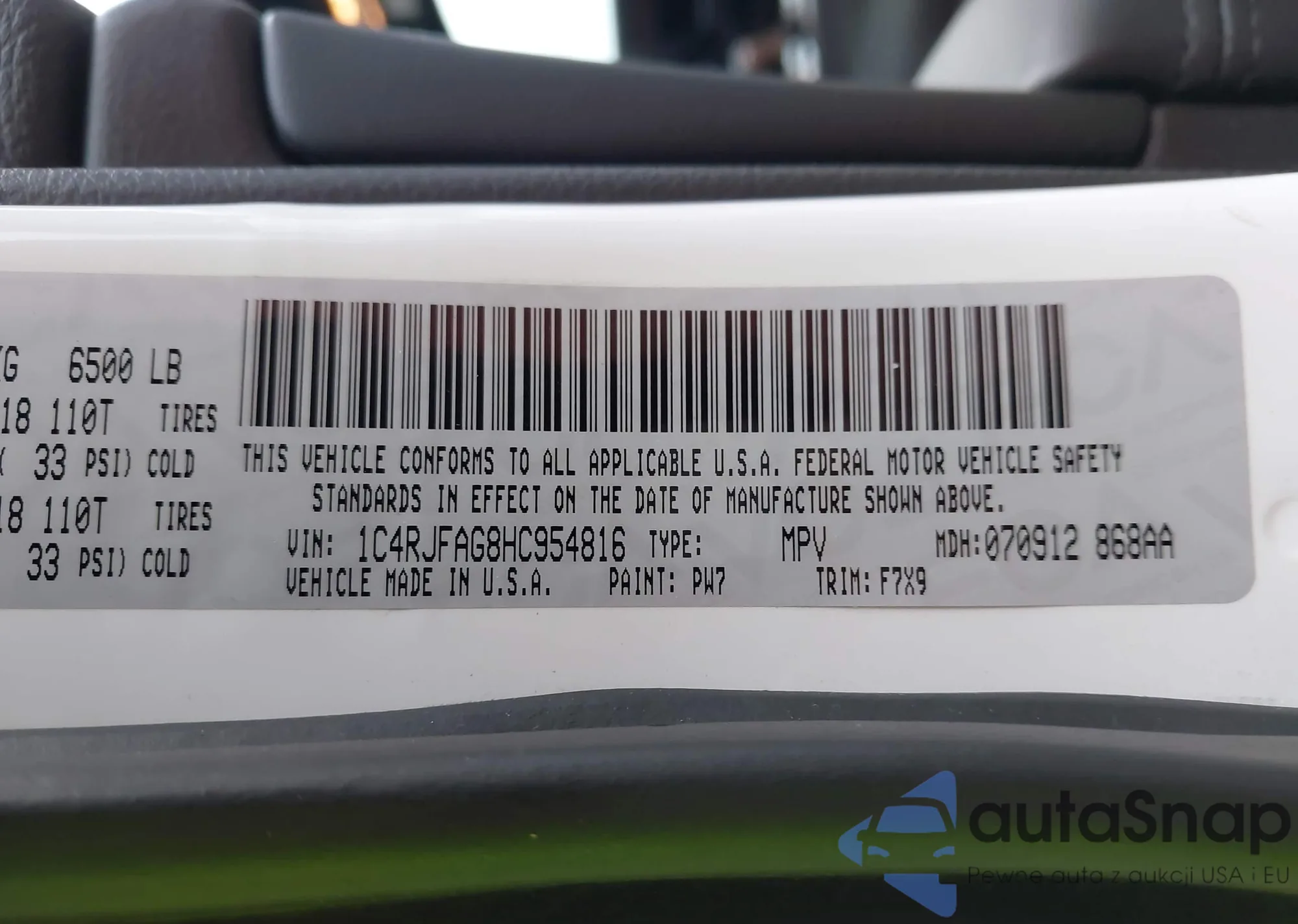 • VIN 1C4RJFAG8HC954816