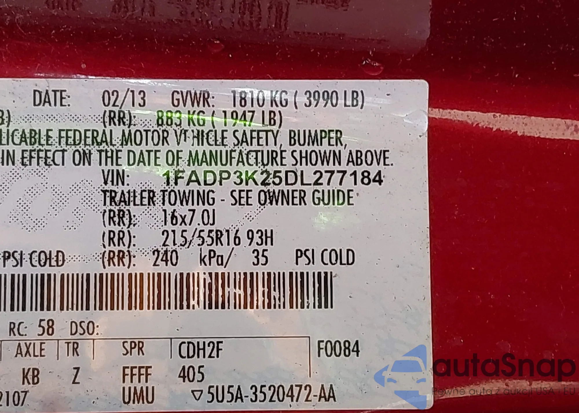 LOT: 43433686 VIN: 4T1BF1FK7DU287126
