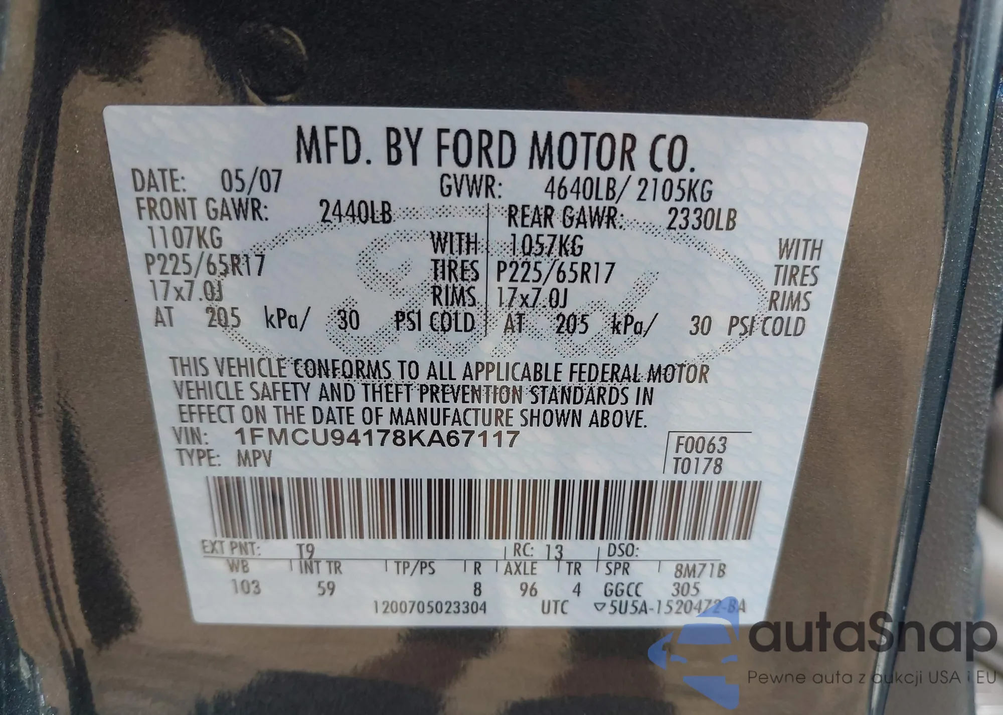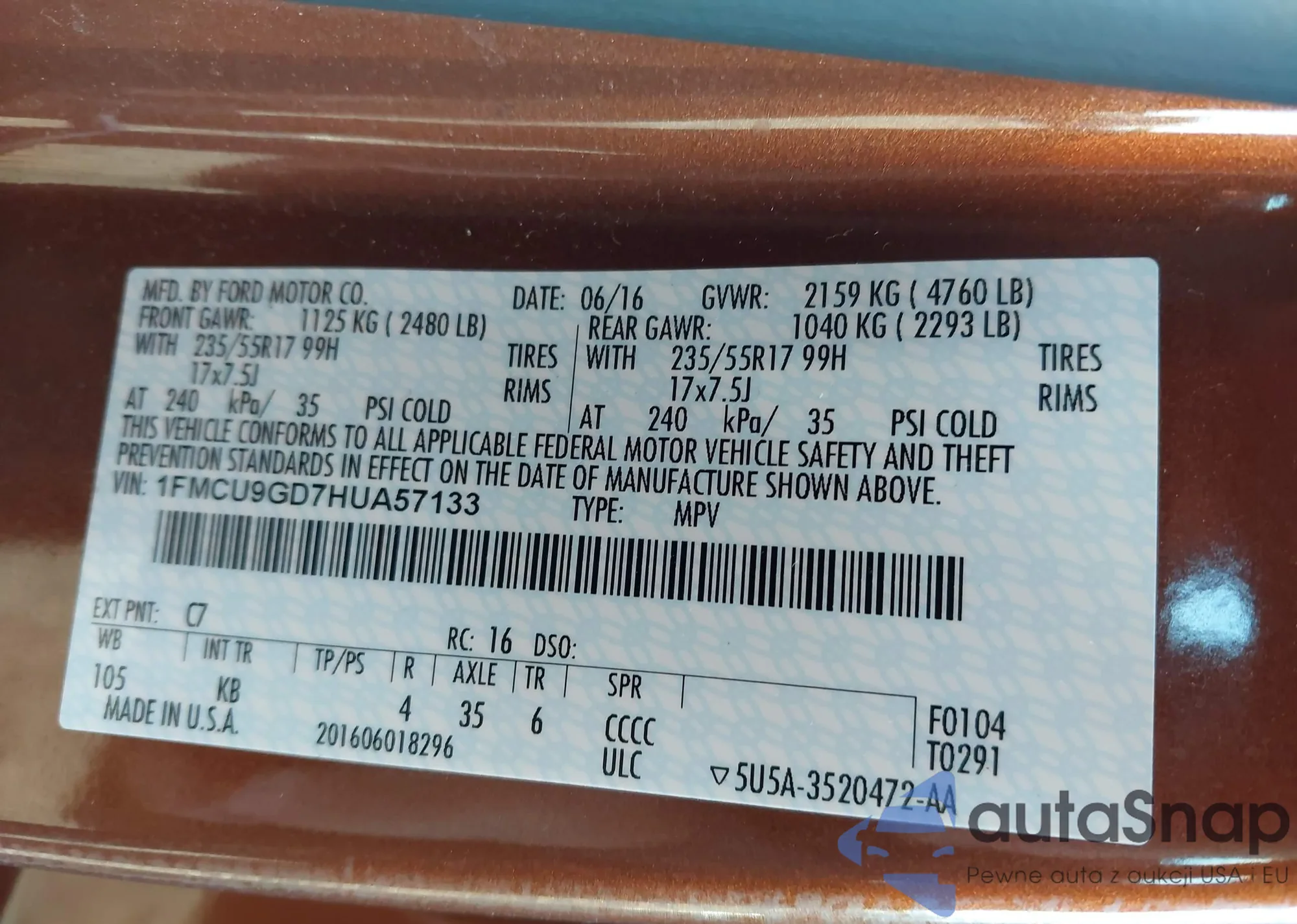 • VIN 1FMCU9GD7HUA57133