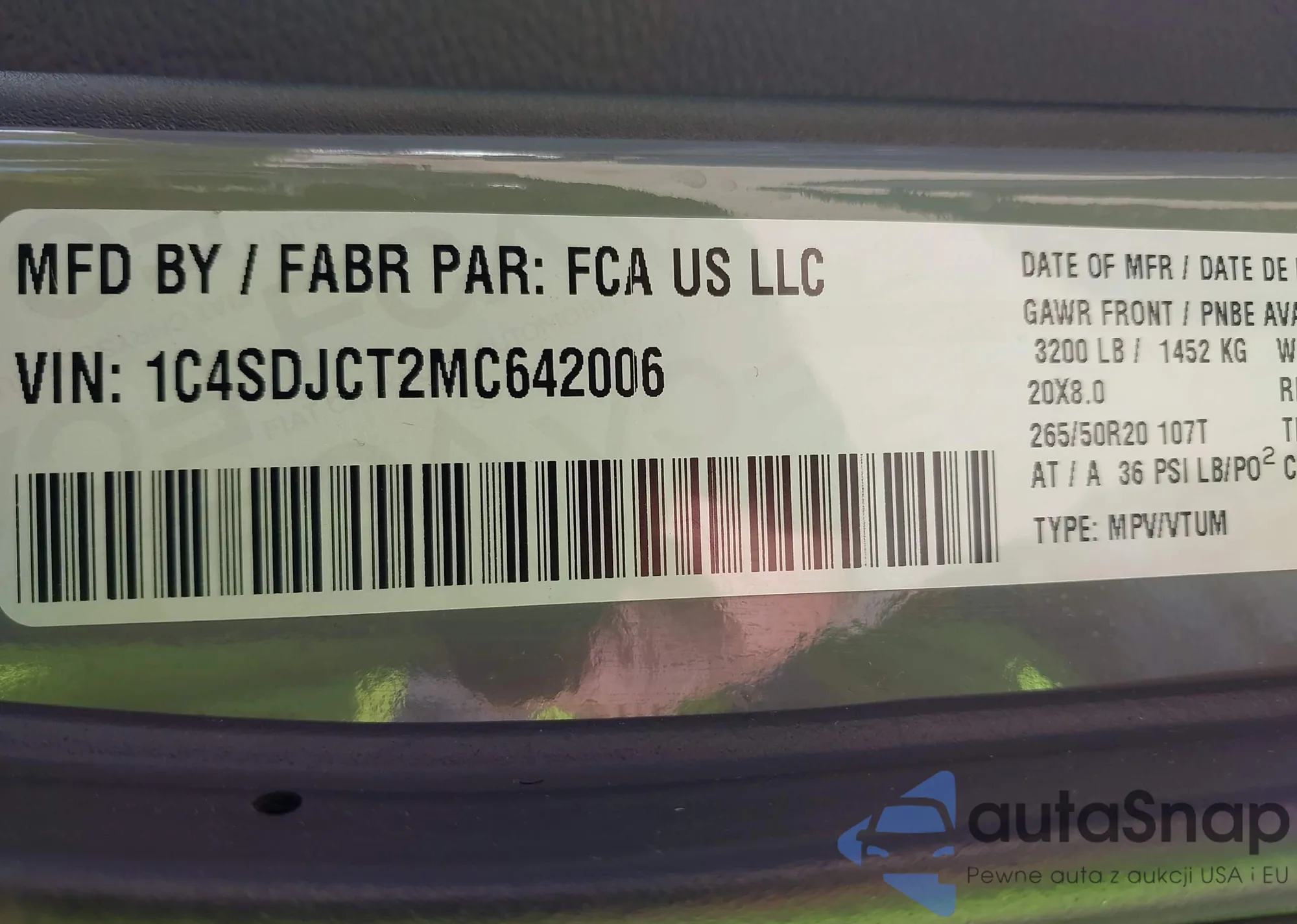 LOT: 43071348 VIN: 1C4SDJCT2MC642006
