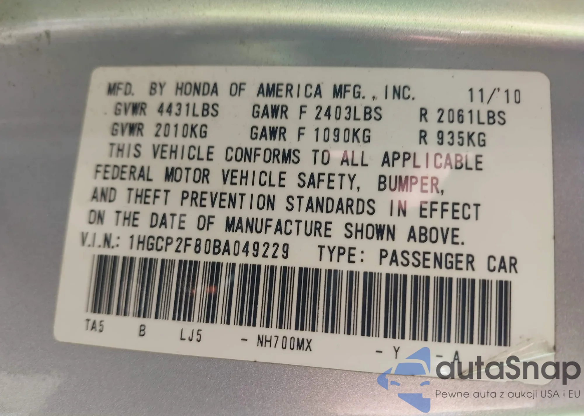 • VIN 5XYKTDA22BG158523