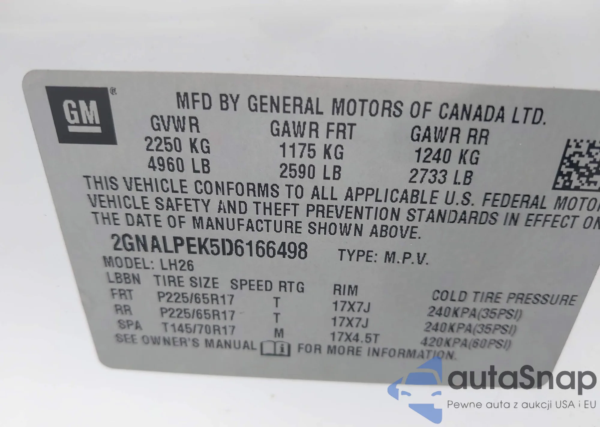 LOT: 43320315 VIN: JF1GJAC69CH007686