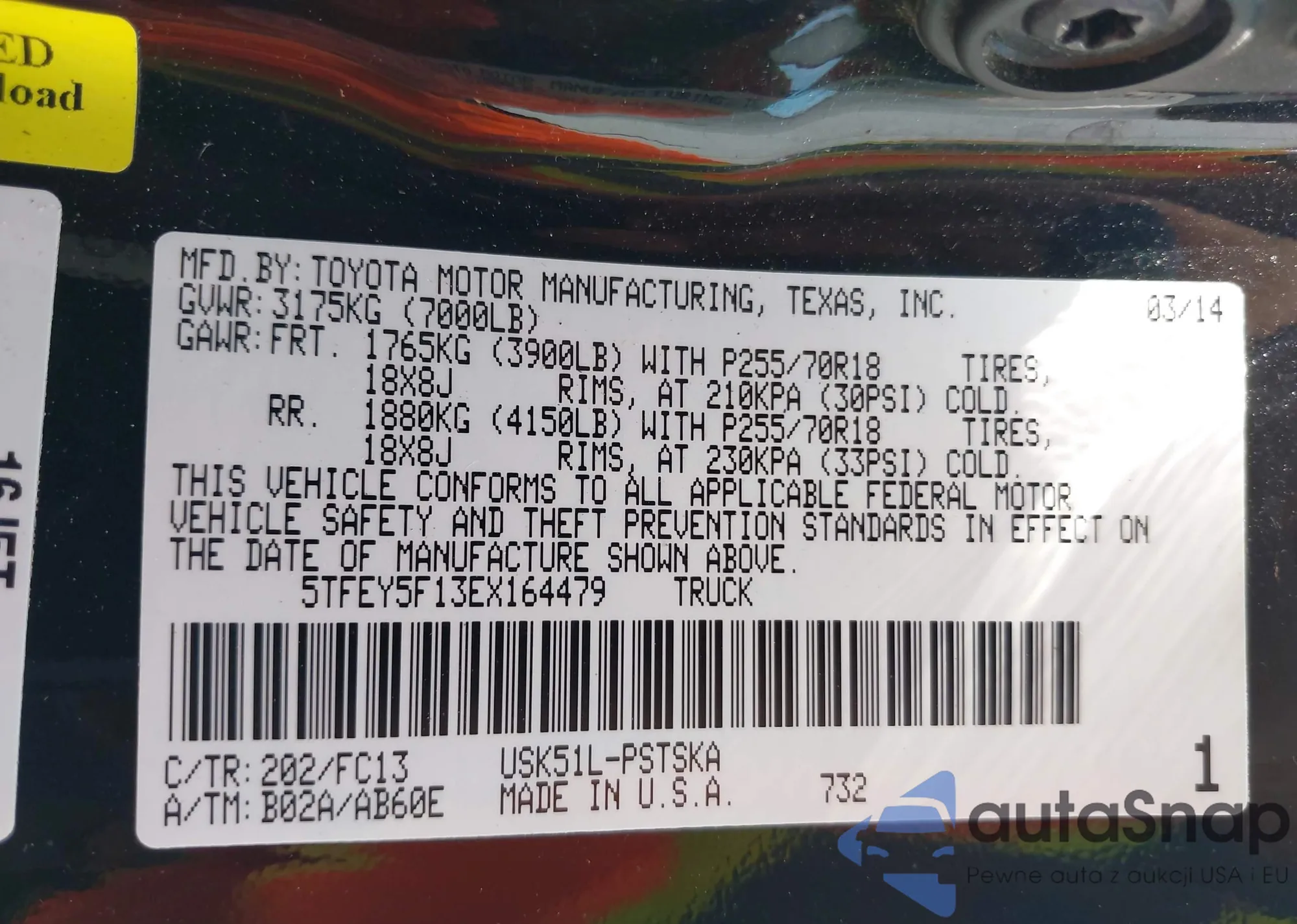 • VIN 5TFEY5F13EX164479