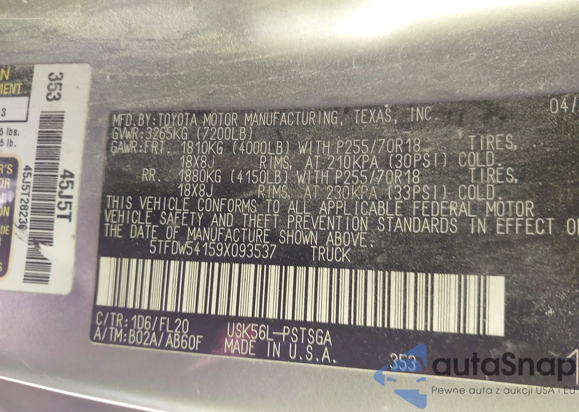 LOT: 43132757 VIN: 5TFDW54159X093537