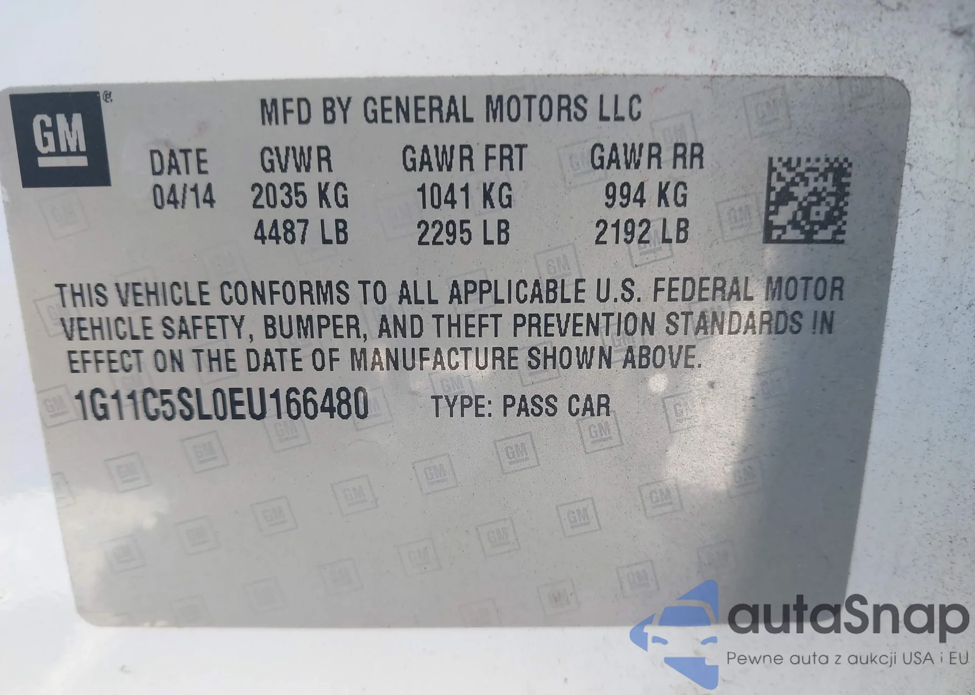 LOT: 43179510 VIN: 1G11C5SL0EU166480