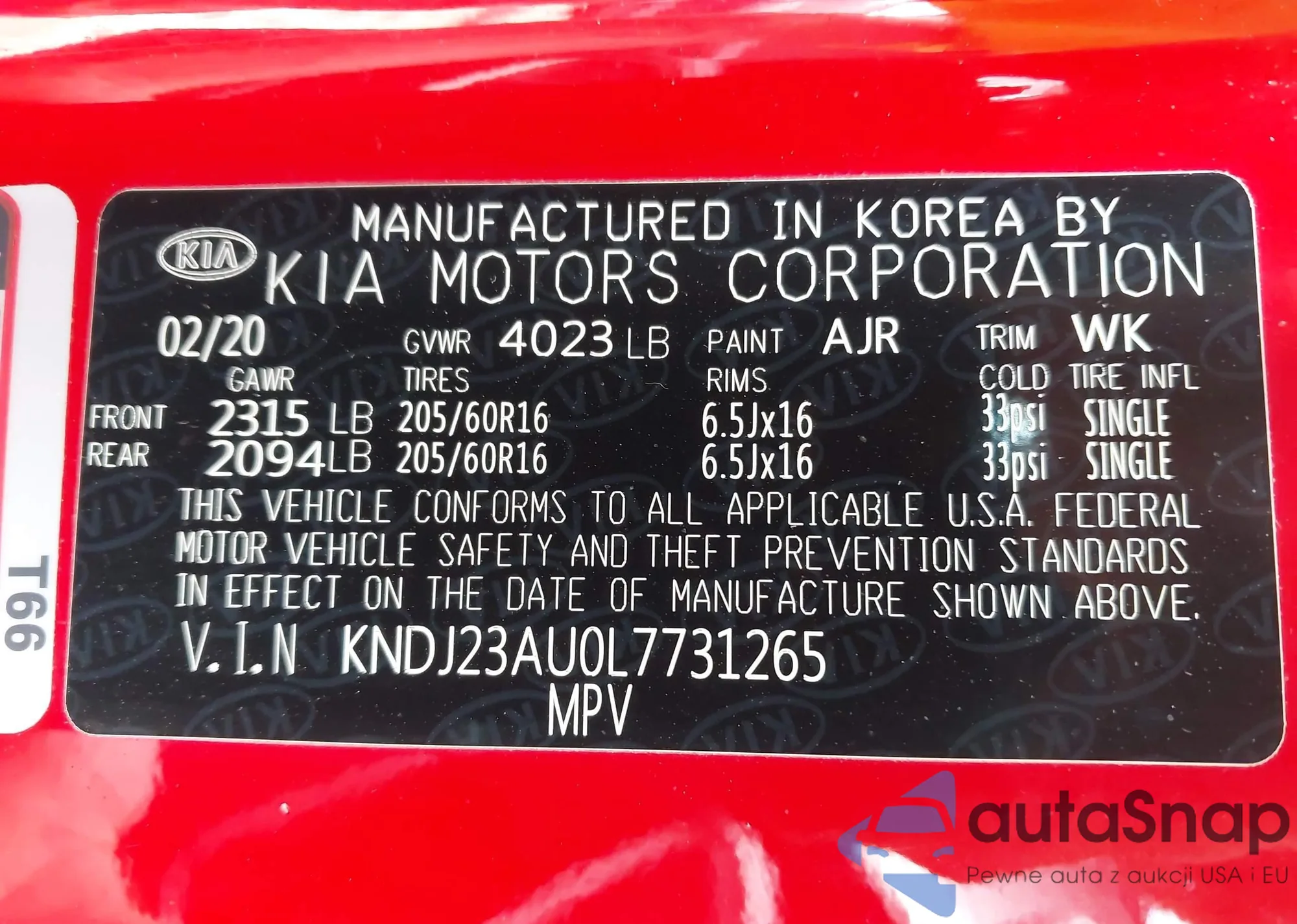• VIN KNDJ23AU0L7731265
