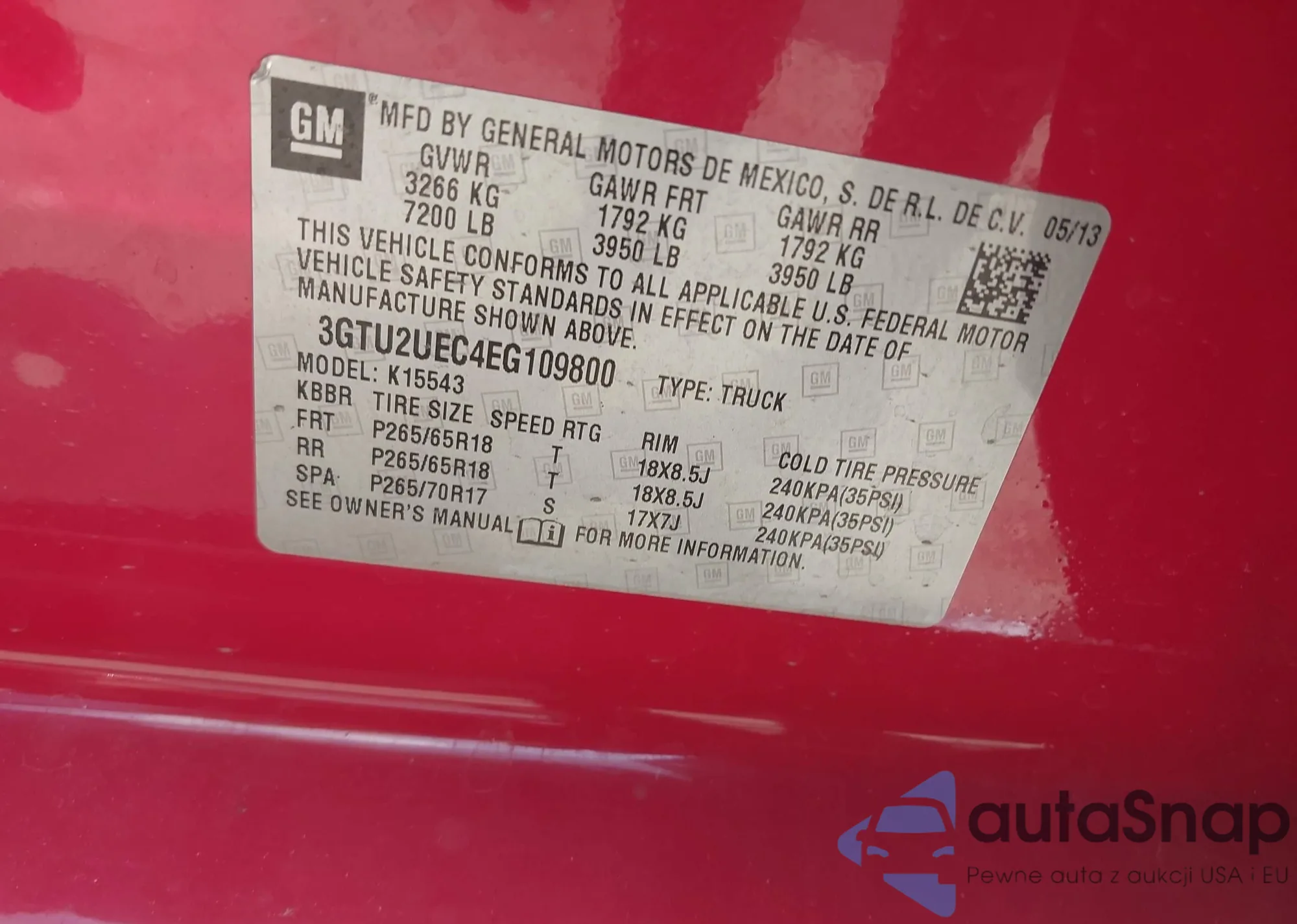 LOT: 43238969 VIN: 3GTU2UEC4EG109800