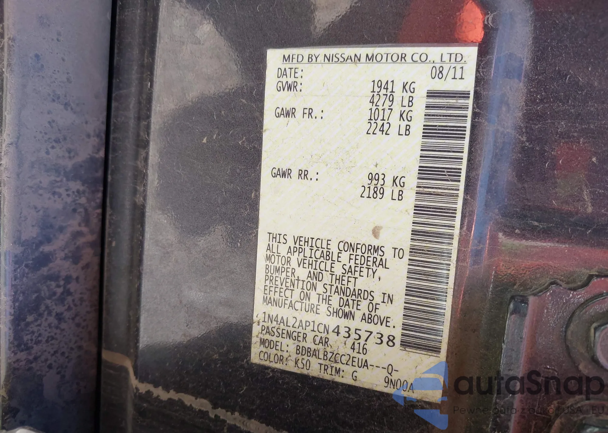 • VIN 1N4AL3AP3EN350313