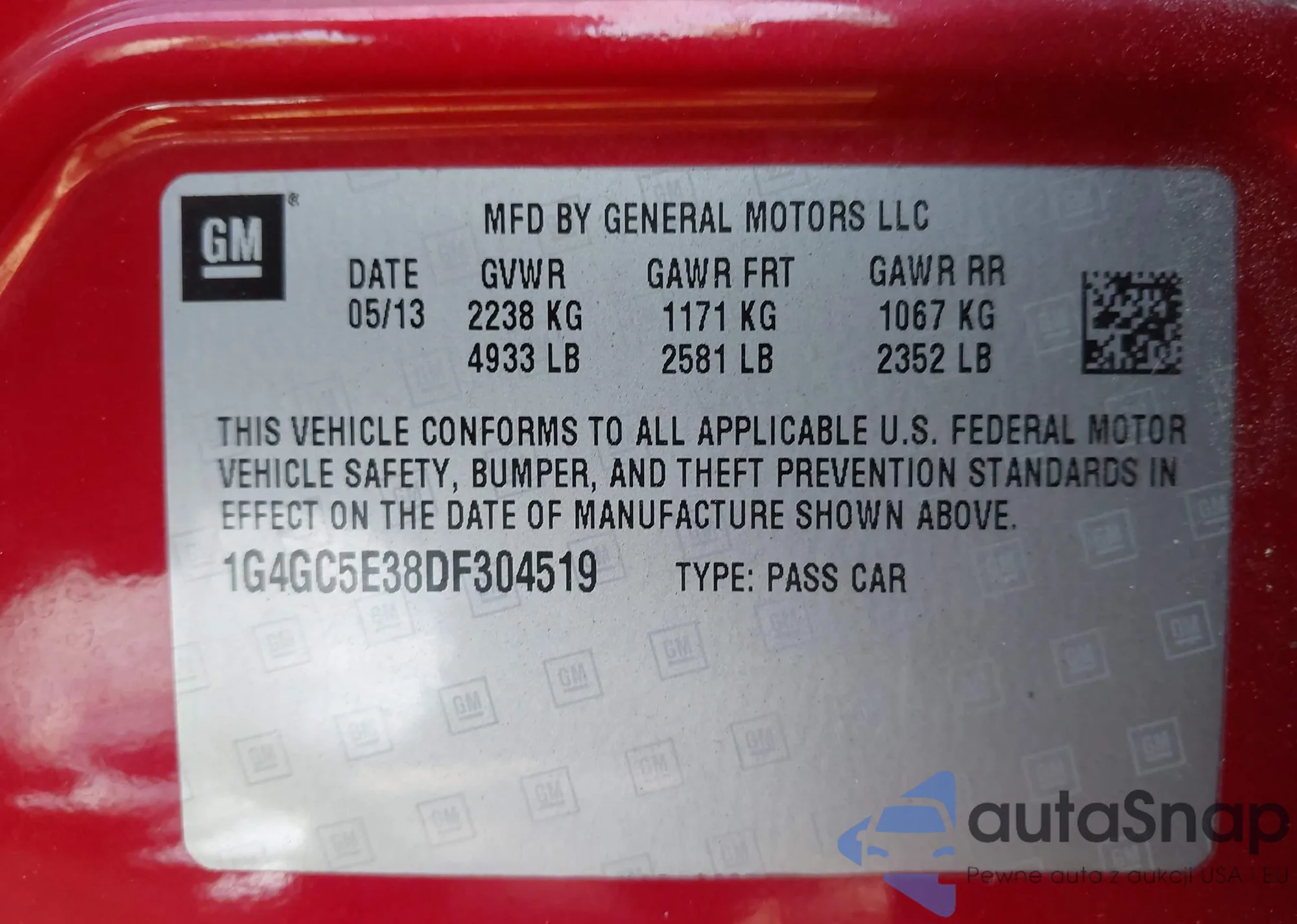 • VIN 1G4GC5E38DF304519