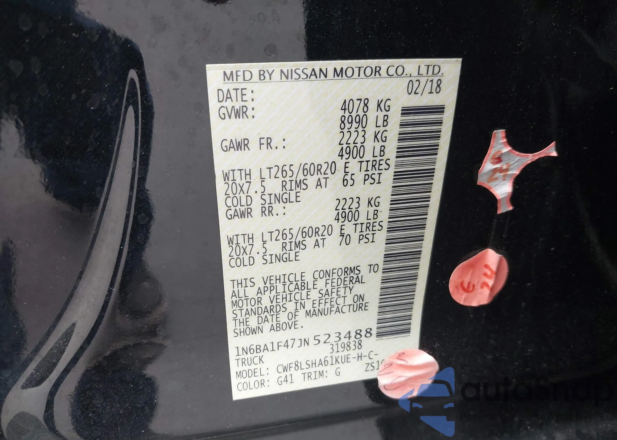 • VIN 1N6BA1F47JN523488