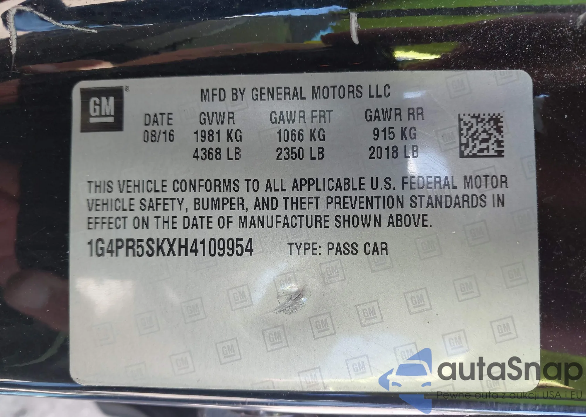 LOT: 43033091 VIN: 1G4PR5SKXH4109954