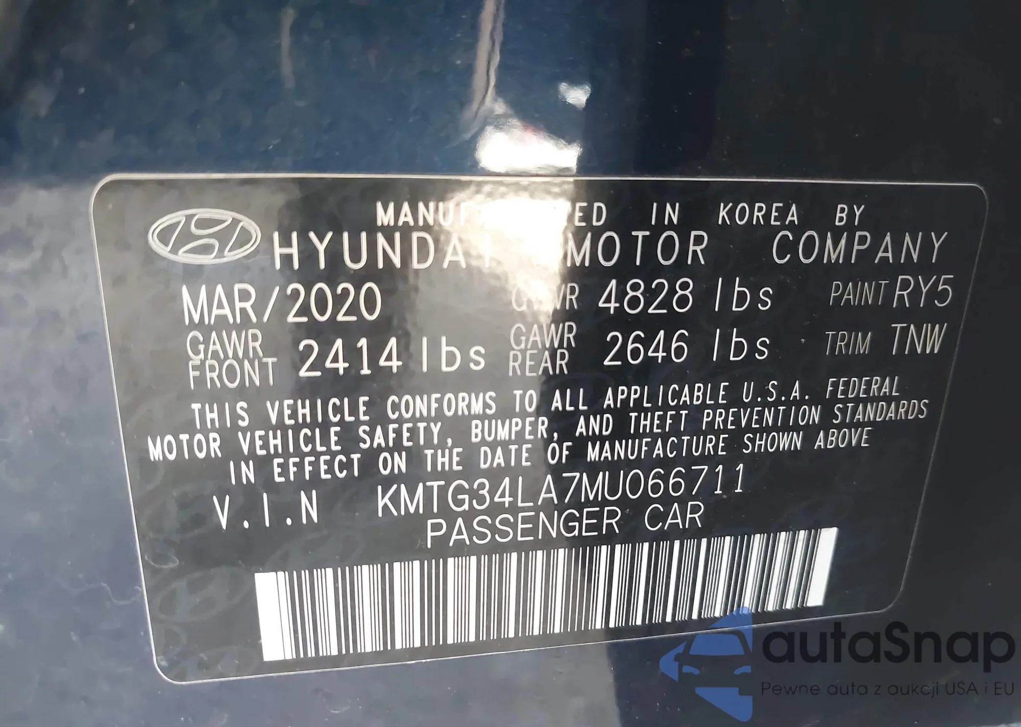 LOT: 43145707 VIN: KMTG34LA7MU066711