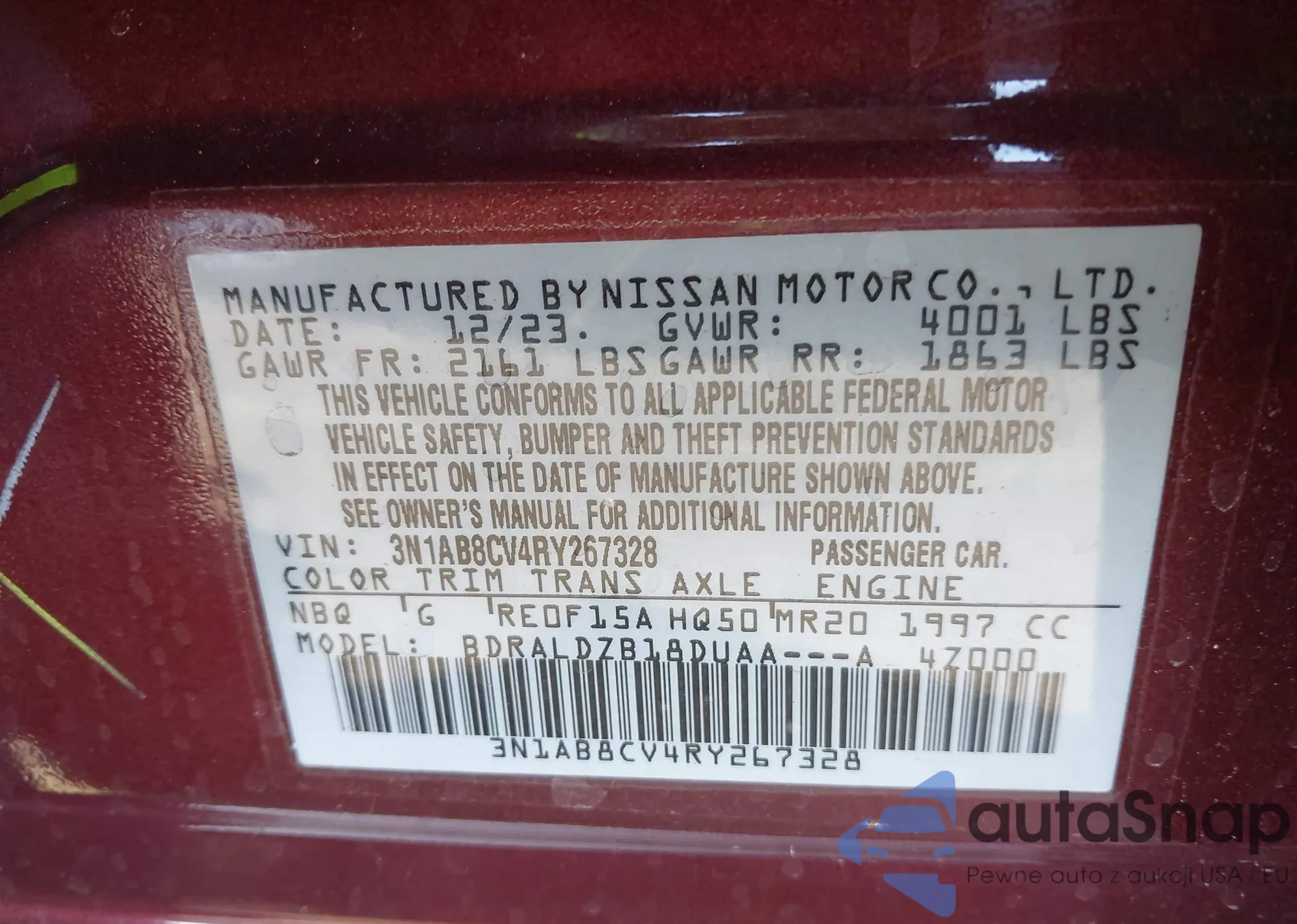 LOT: 43330688 VIN: 5N1BT3AA3PC910836
