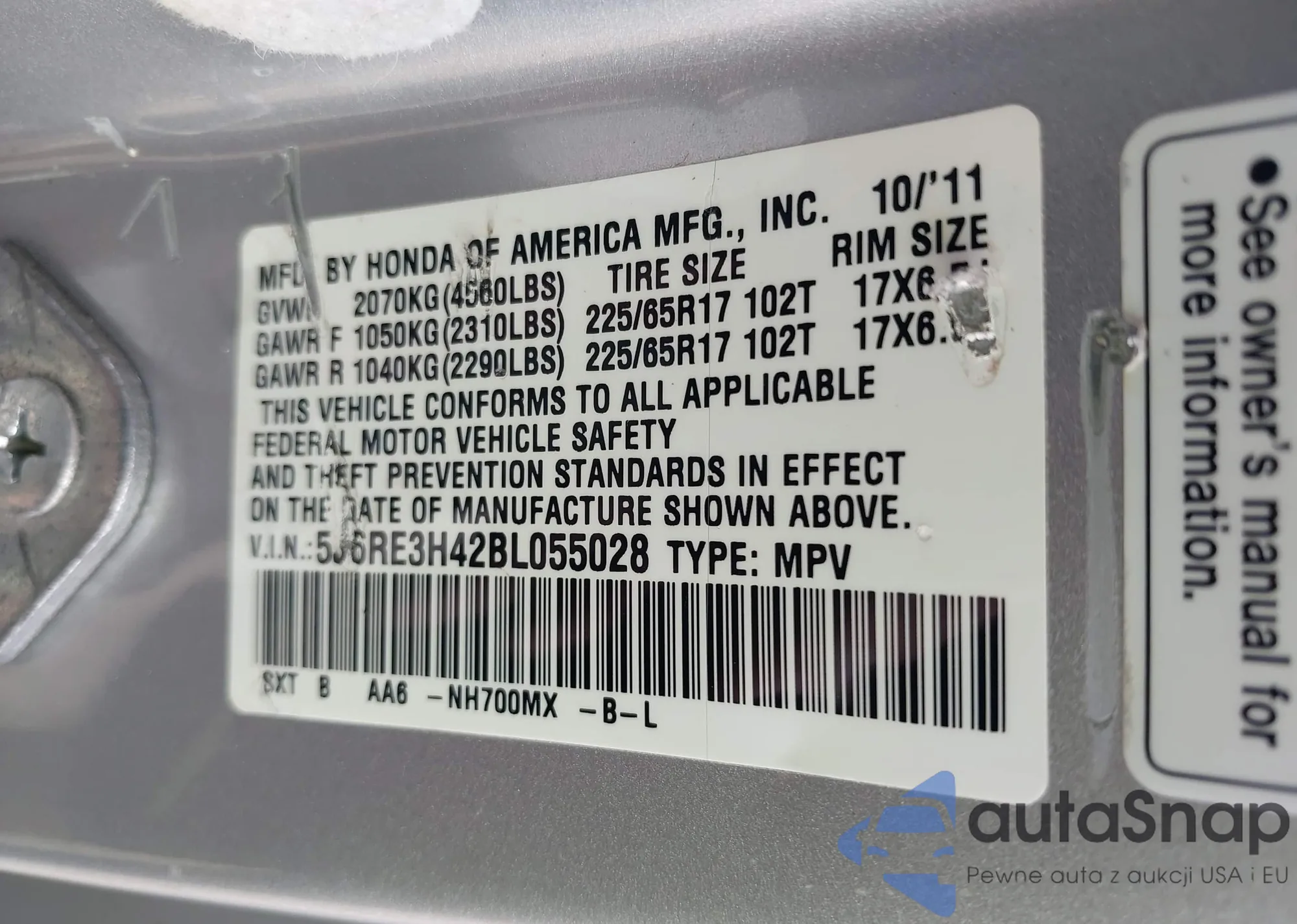 • VIN 5FNYF6H80NB057094