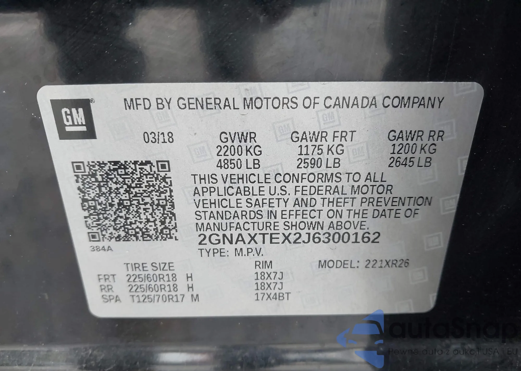 LOT: 43380223 VIN: 2GNAXTEX2J6300162