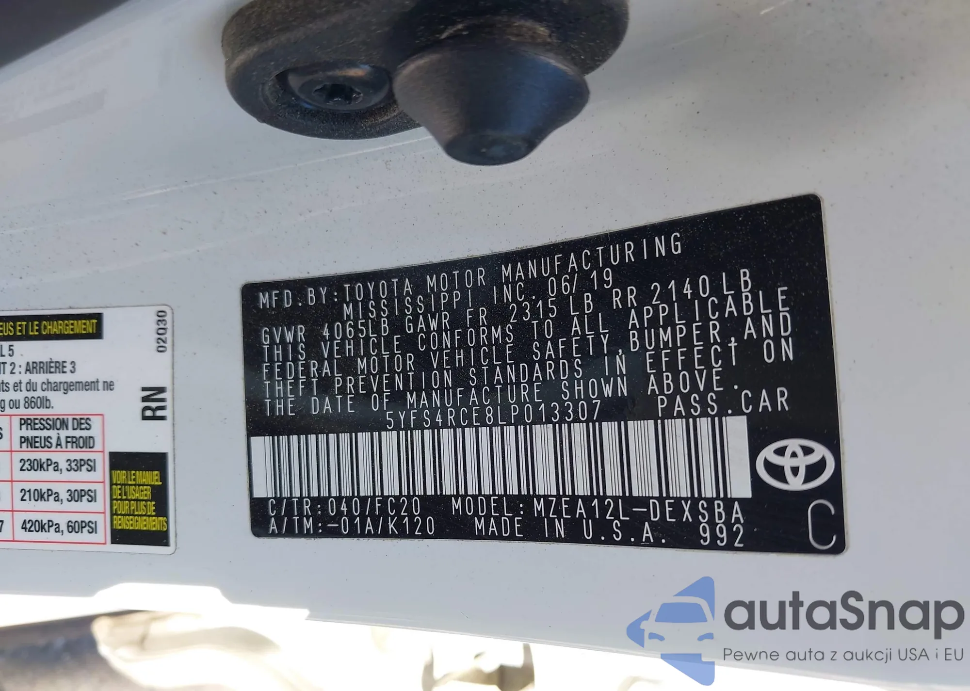LOT: 43386419 VIN: 5YFS4RCE8LP013307