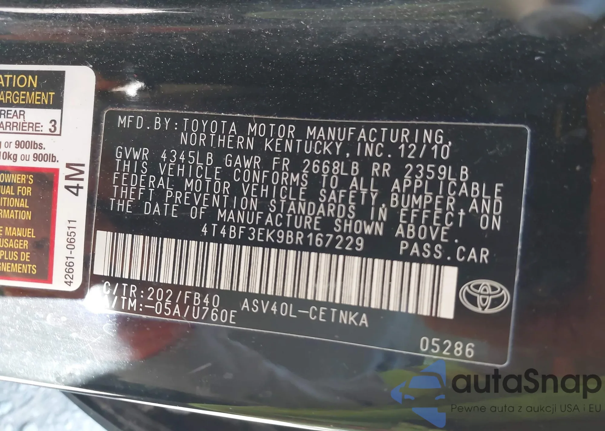 • VIN 5N1BT3AA3PC910836
