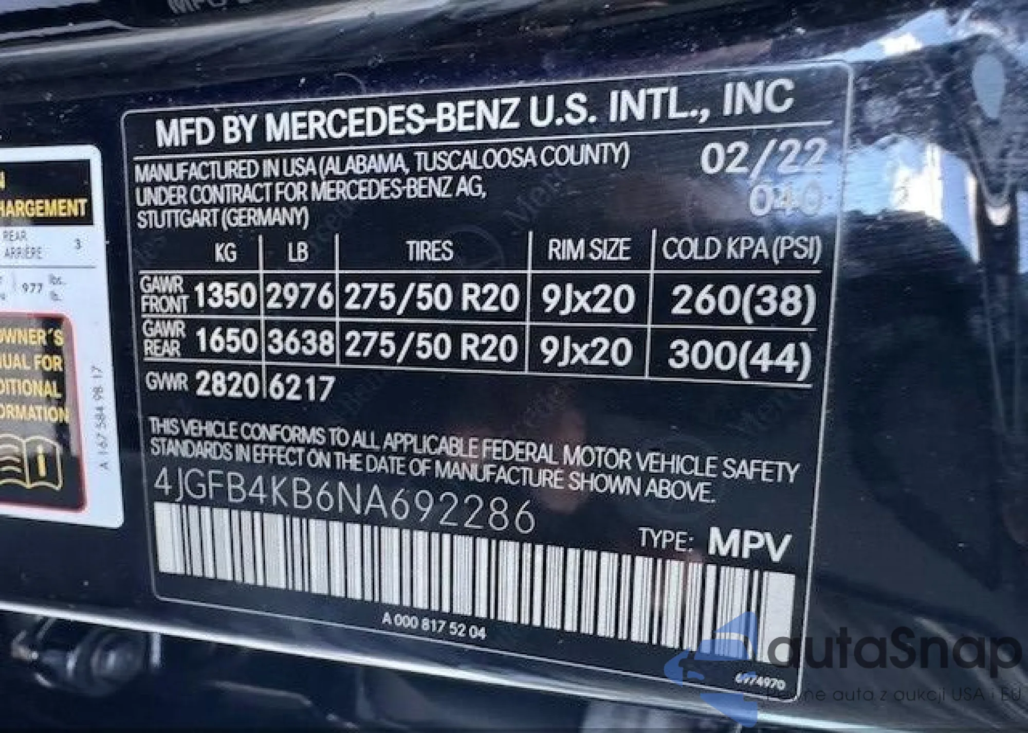 • VIN 4JGFB4KB6NA692286