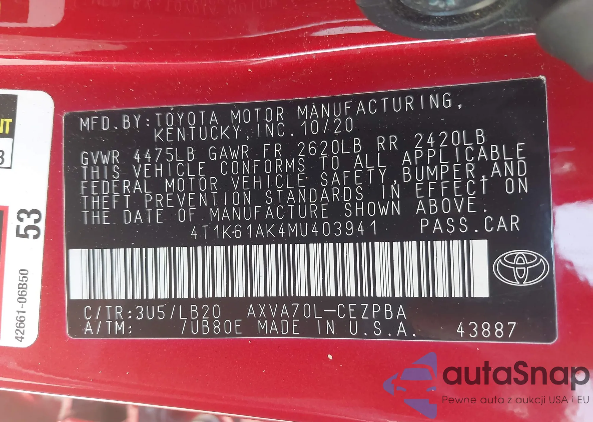 • VIN 4T1K61AK4MU403941