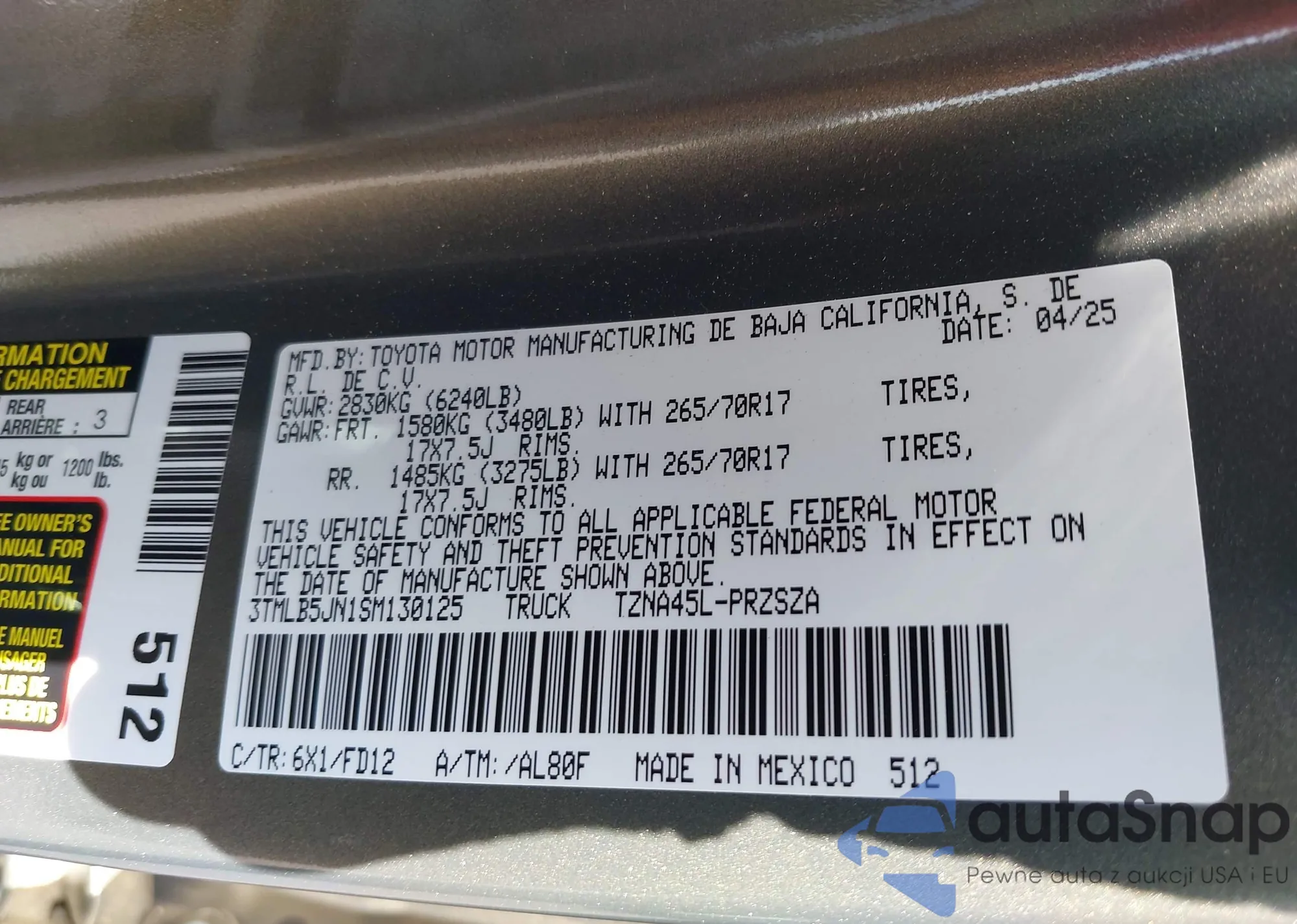 • VIN 3TMLB5JN1SM130125