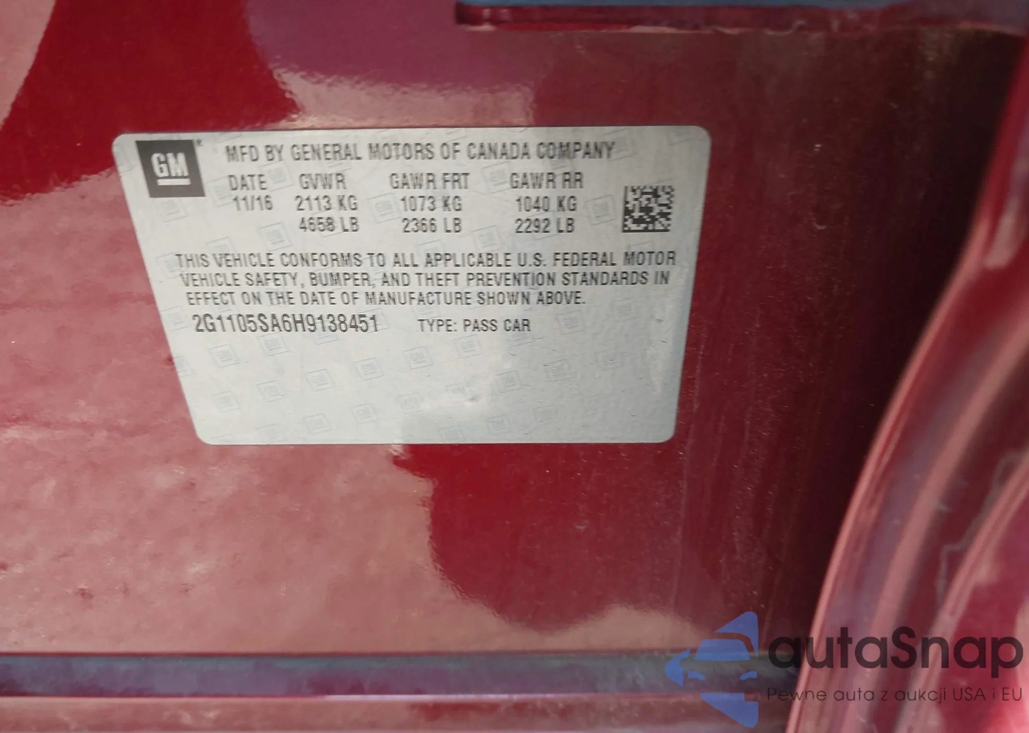 • VIN 2G1WA5E32C1306416