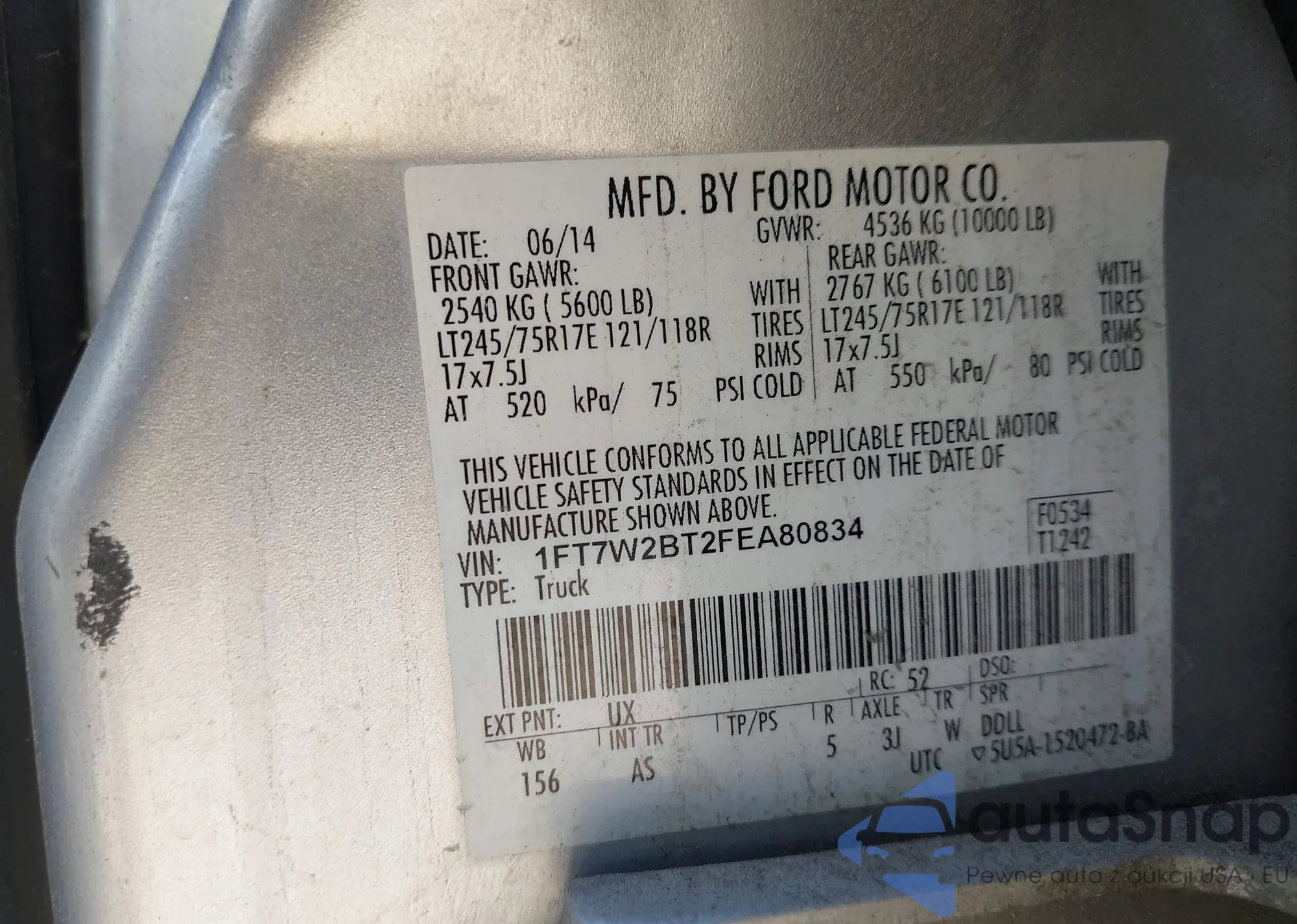 • VIN 1FT7W2BT2FEA80834