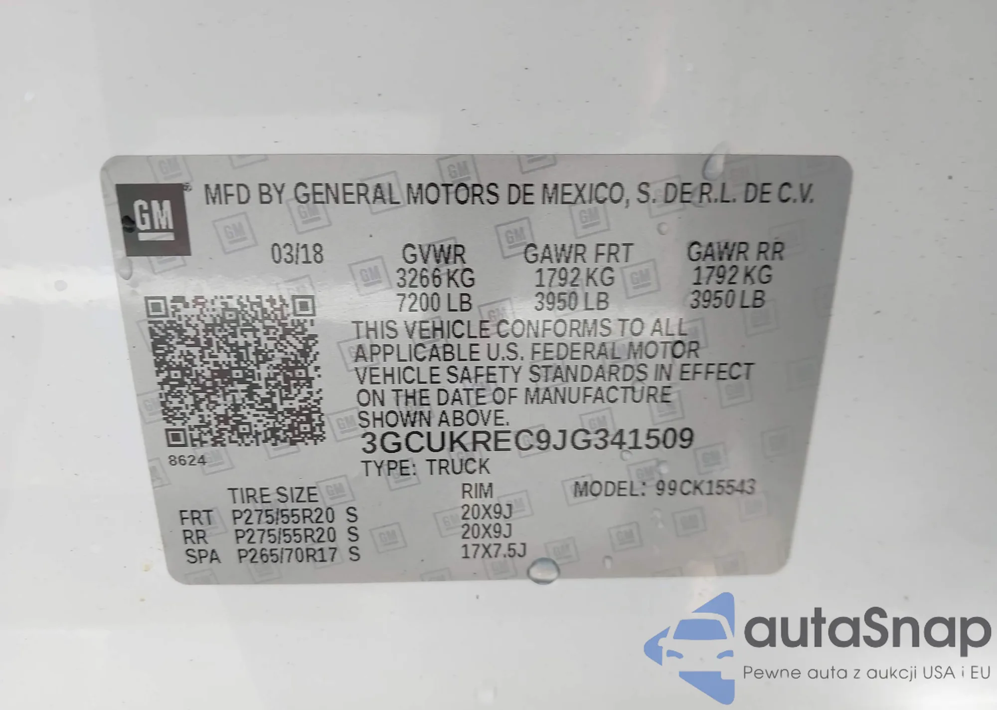 • VIN 3GCUKREC9JG341509