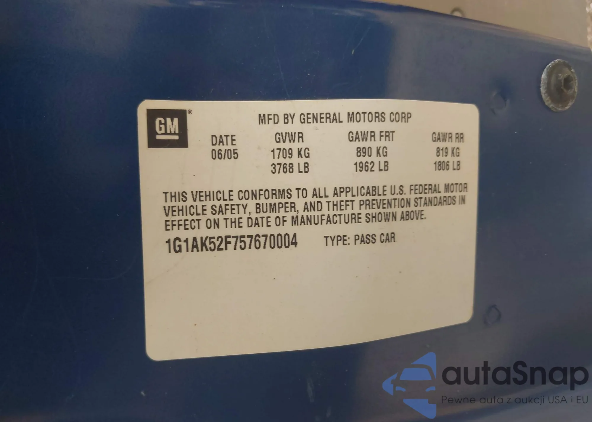 • VIN 1G1AK52F757670004
