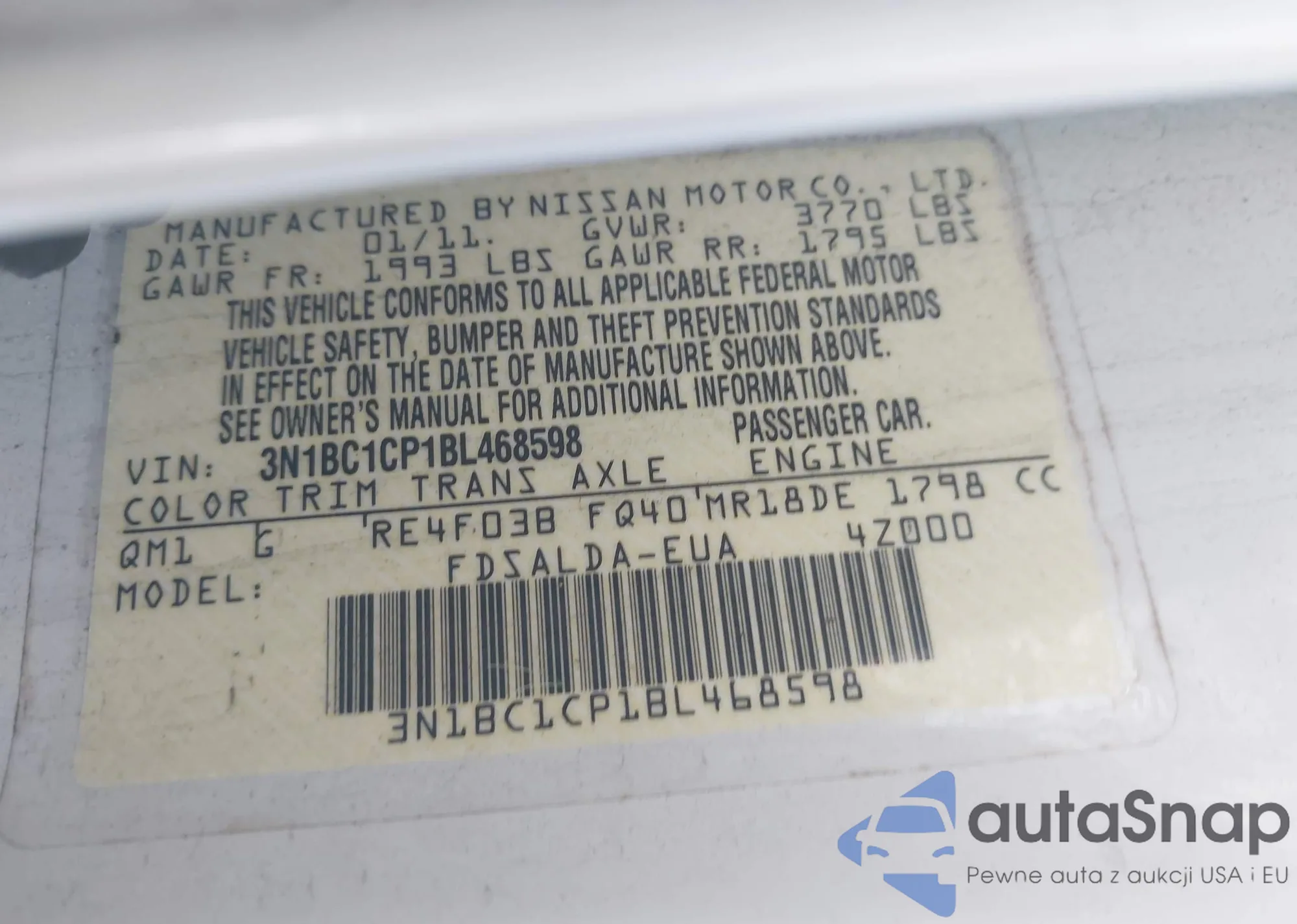 • VIN 3N1BC1CP1BL468598