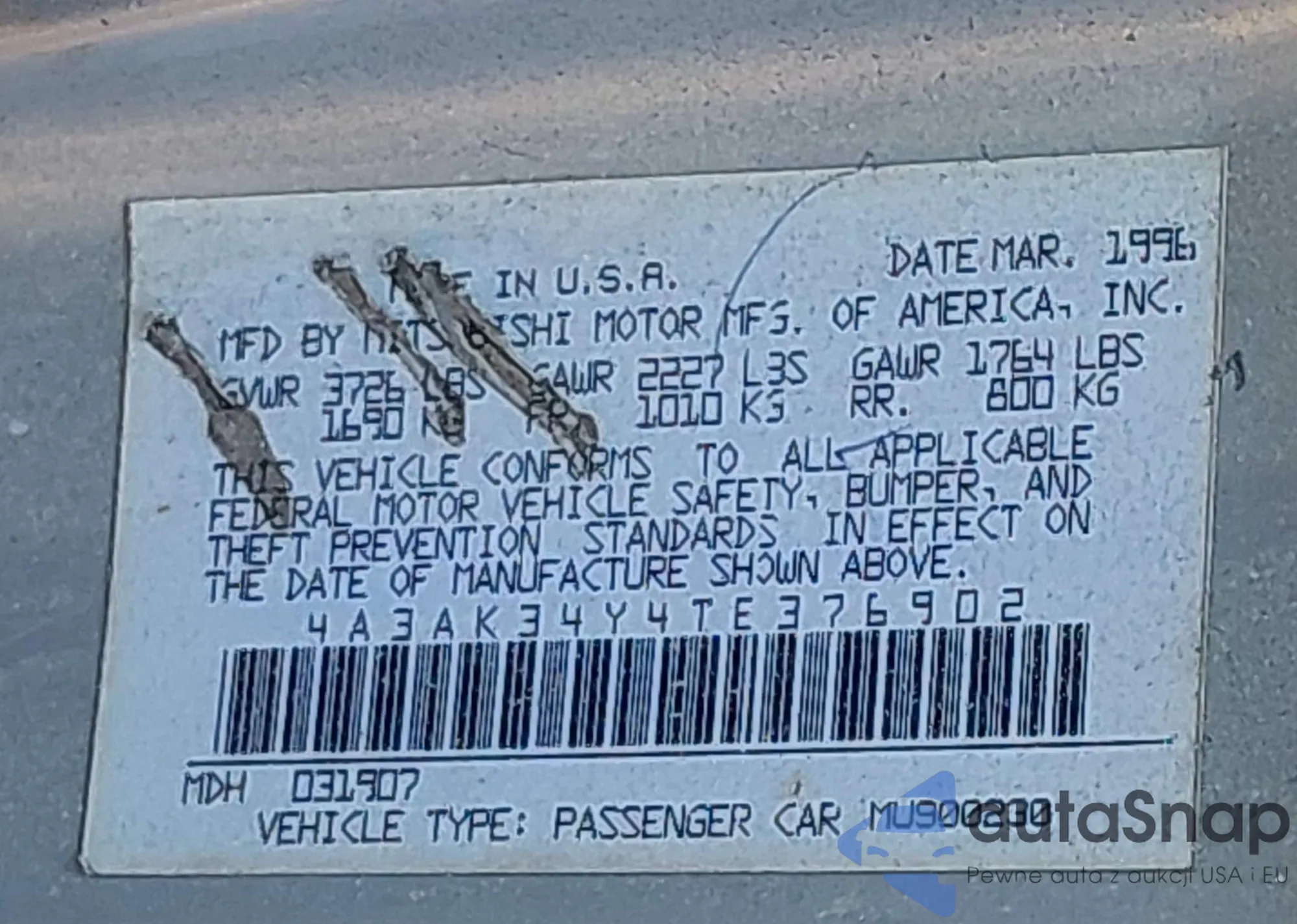 • VIN 3VW4T7AU3HM050321