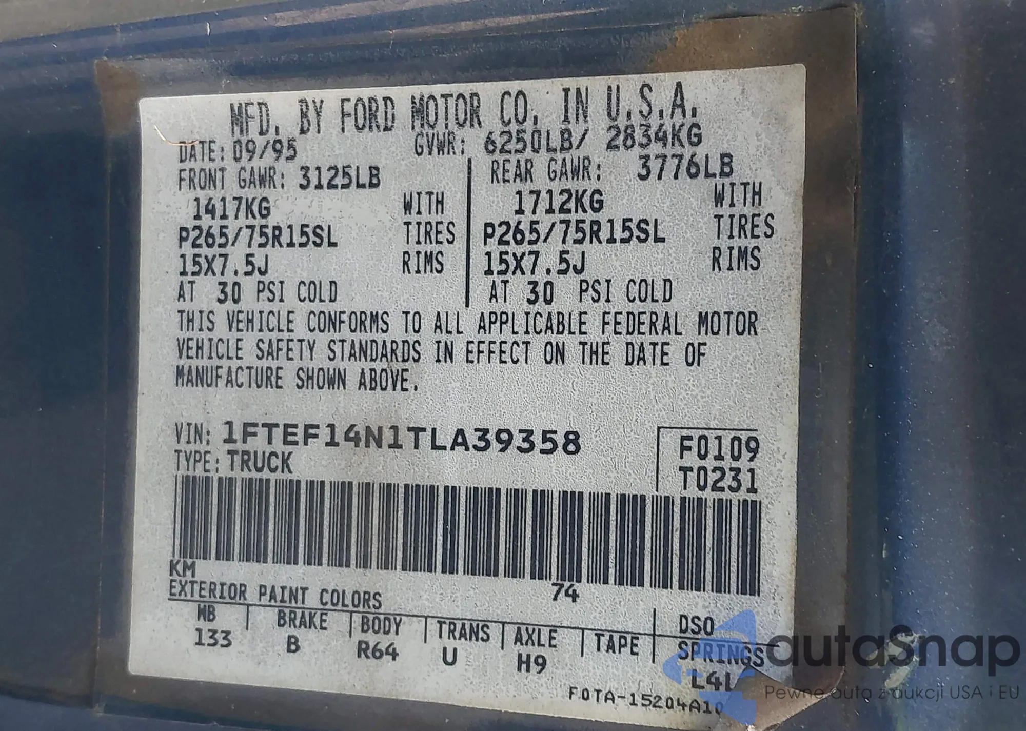 • VIN 1FTEF14N1TLA39358