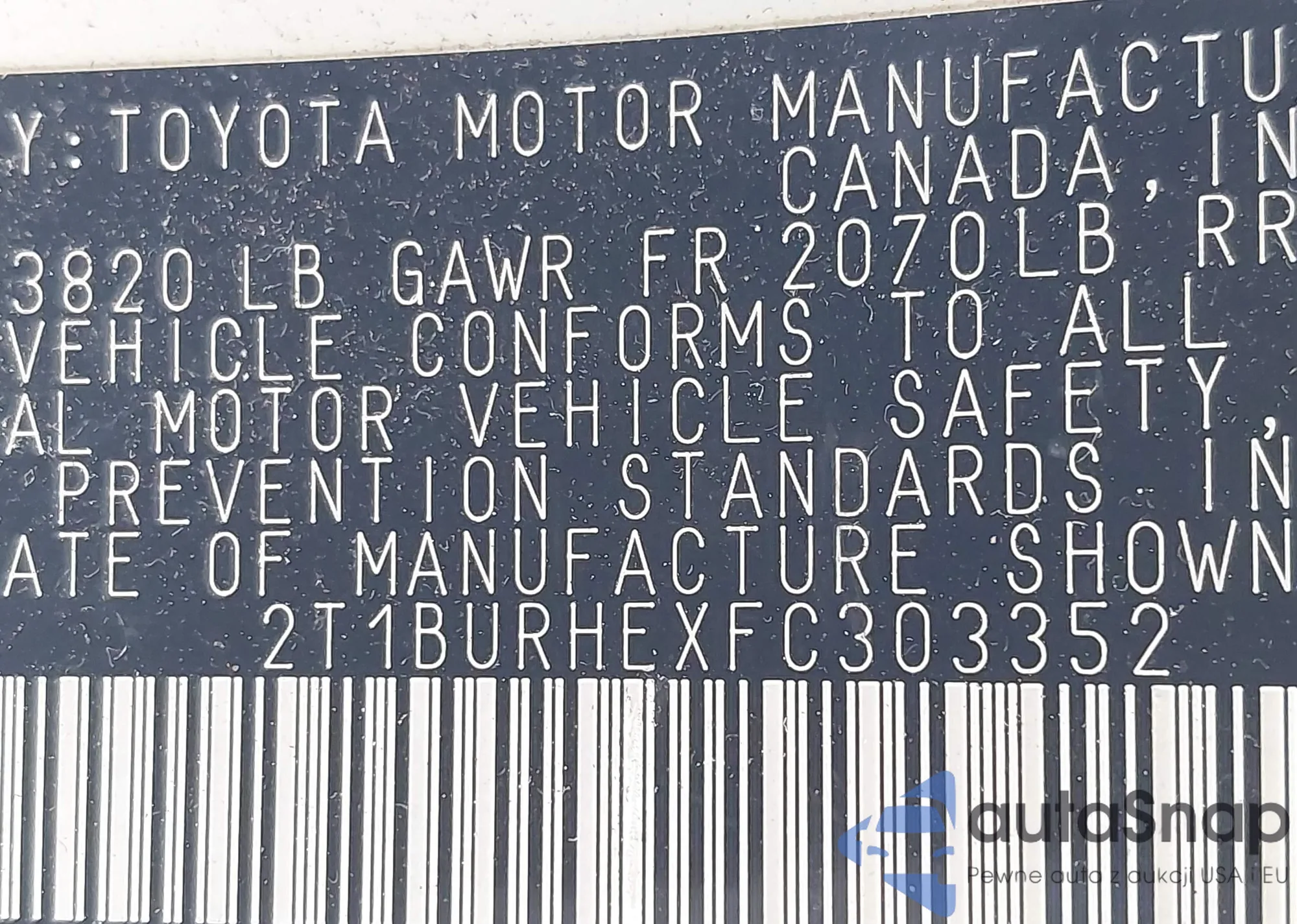 • VIN 2T1BURHEXFC303352