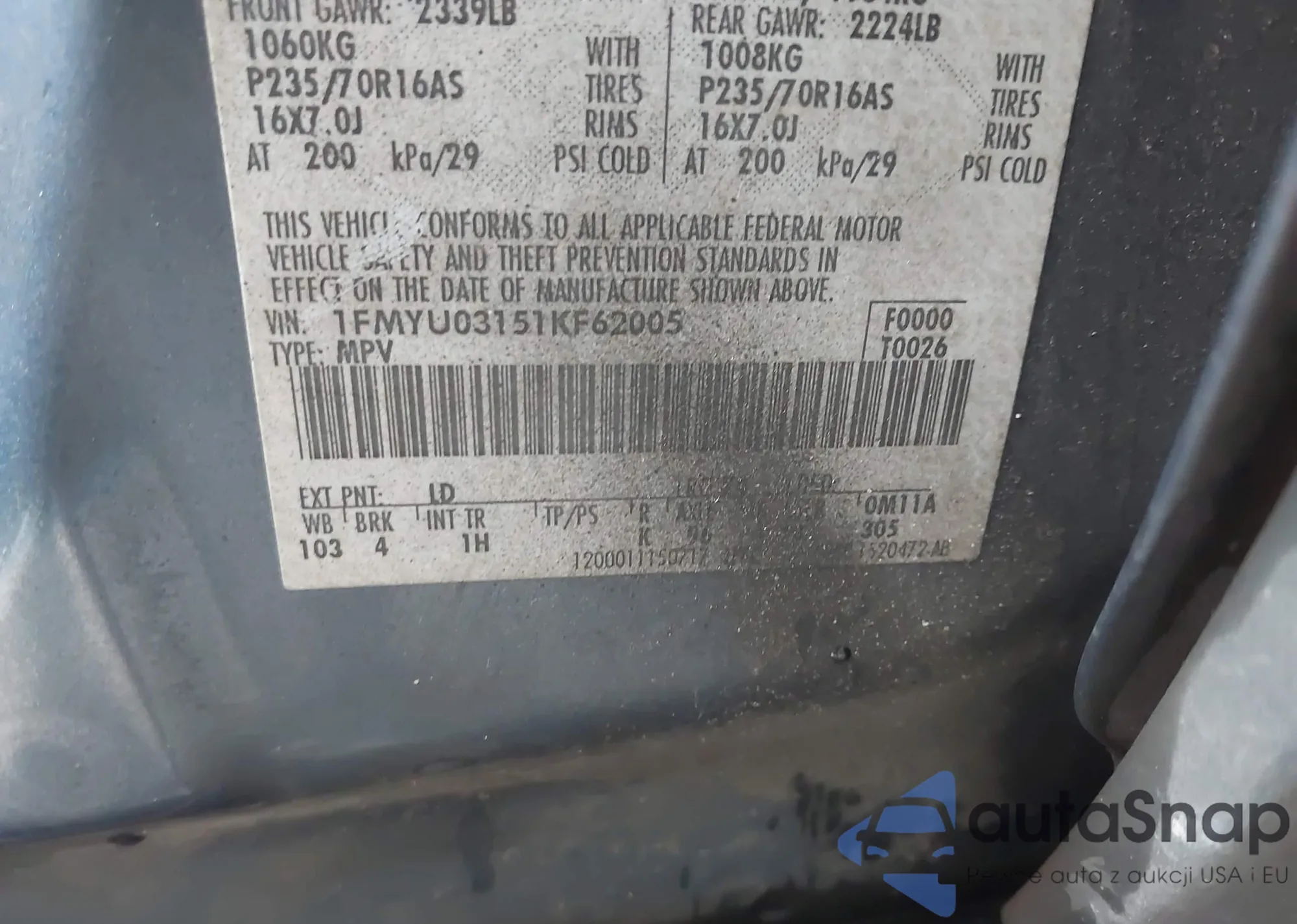 • VIN 1FMYU03151KF62005