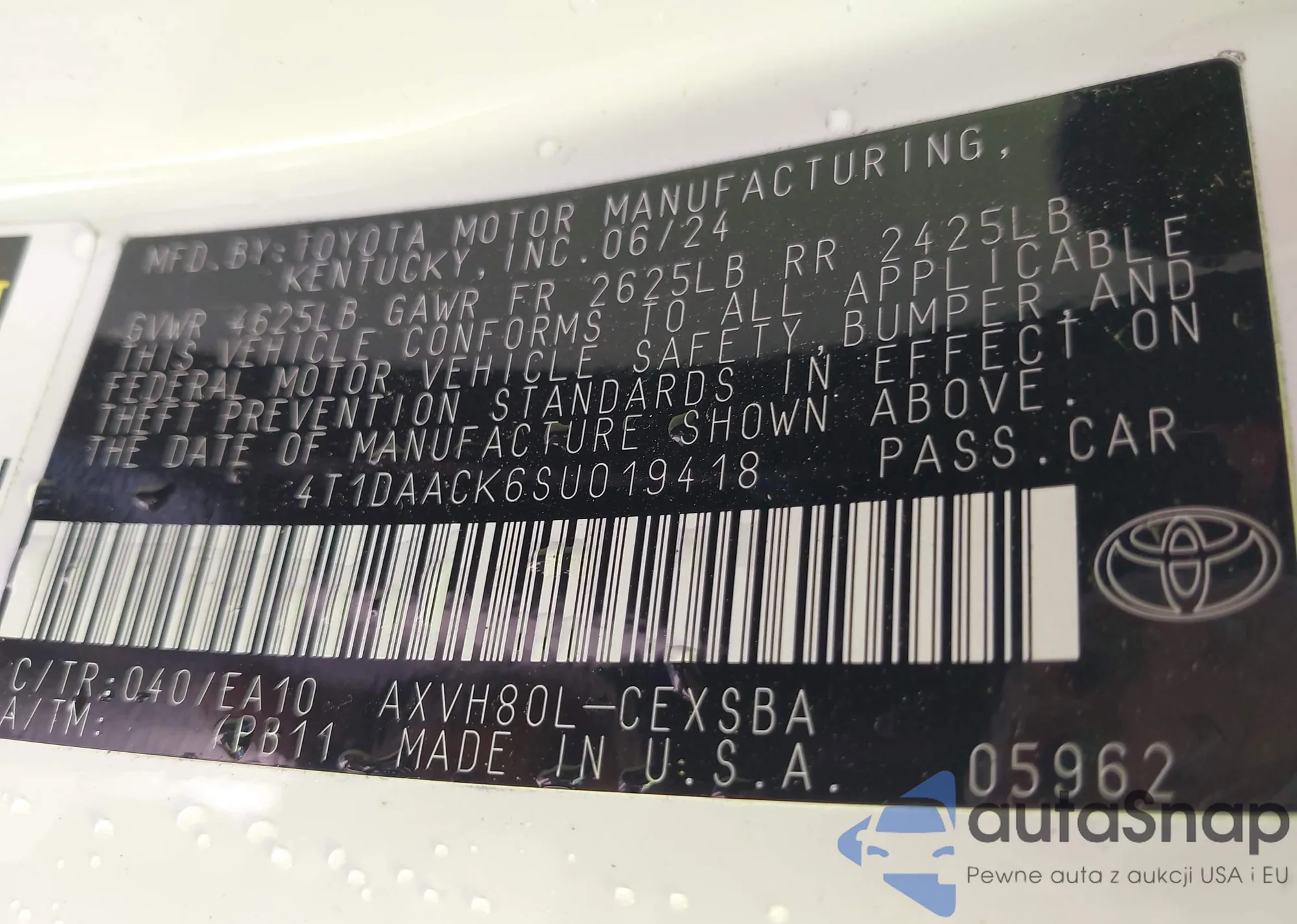 LOT: 43397149 VIN: 4T1DAACK6SU019418
