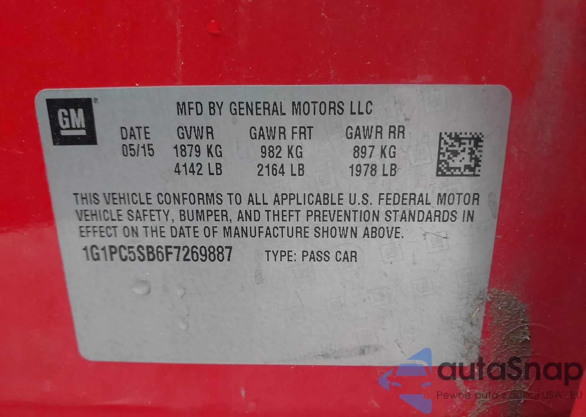 LOT: 43391507 VIN: 1G1PC5SB6F7269887