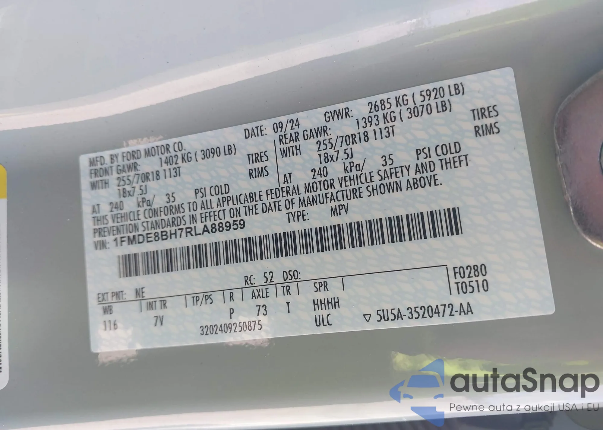 LOT: 43399122 VIN: 1FMDE8BH7RLA88959