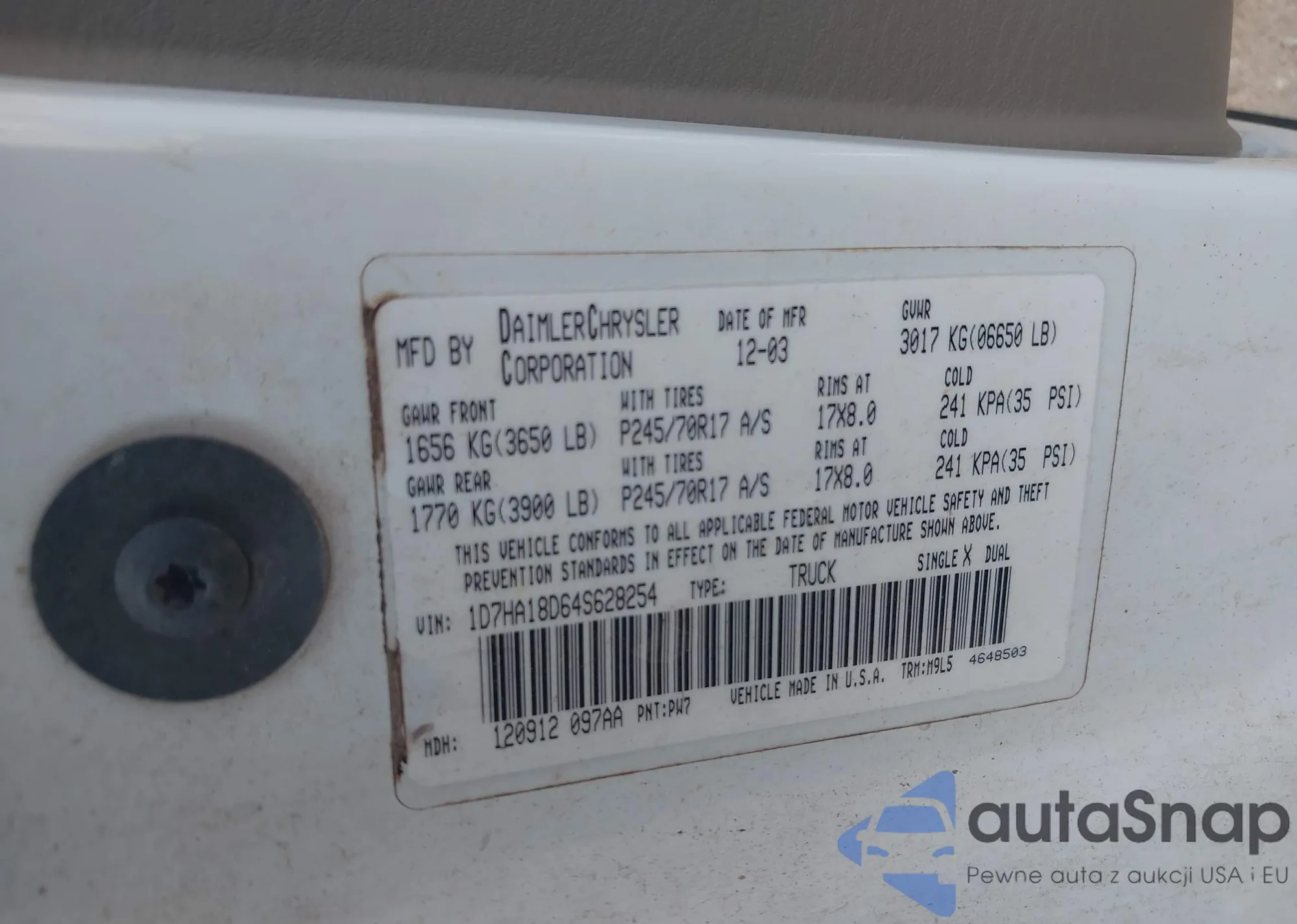 • VIN 3B7HC13Y4XG218031