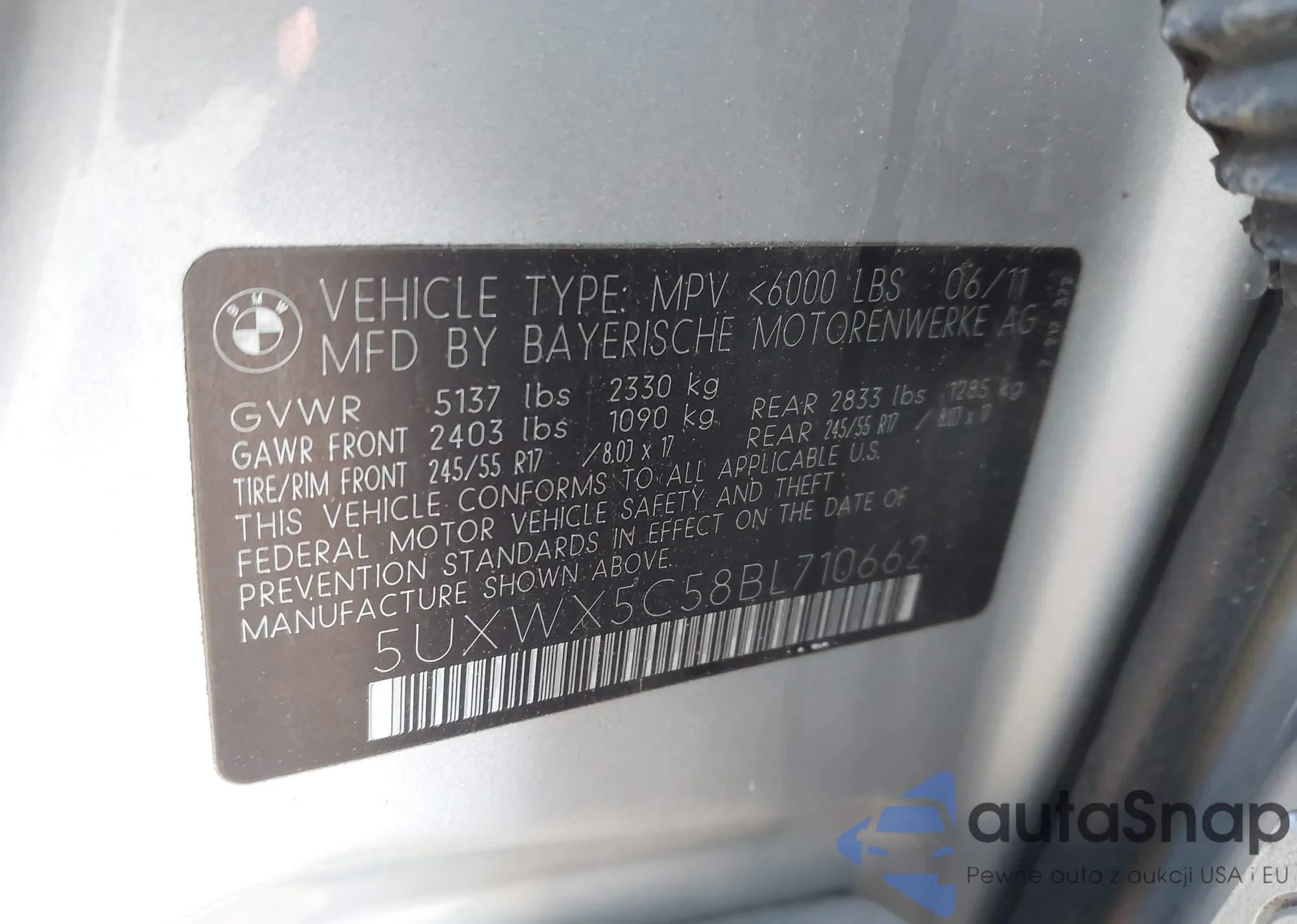 • VIN 5UXWX5C58BL710662