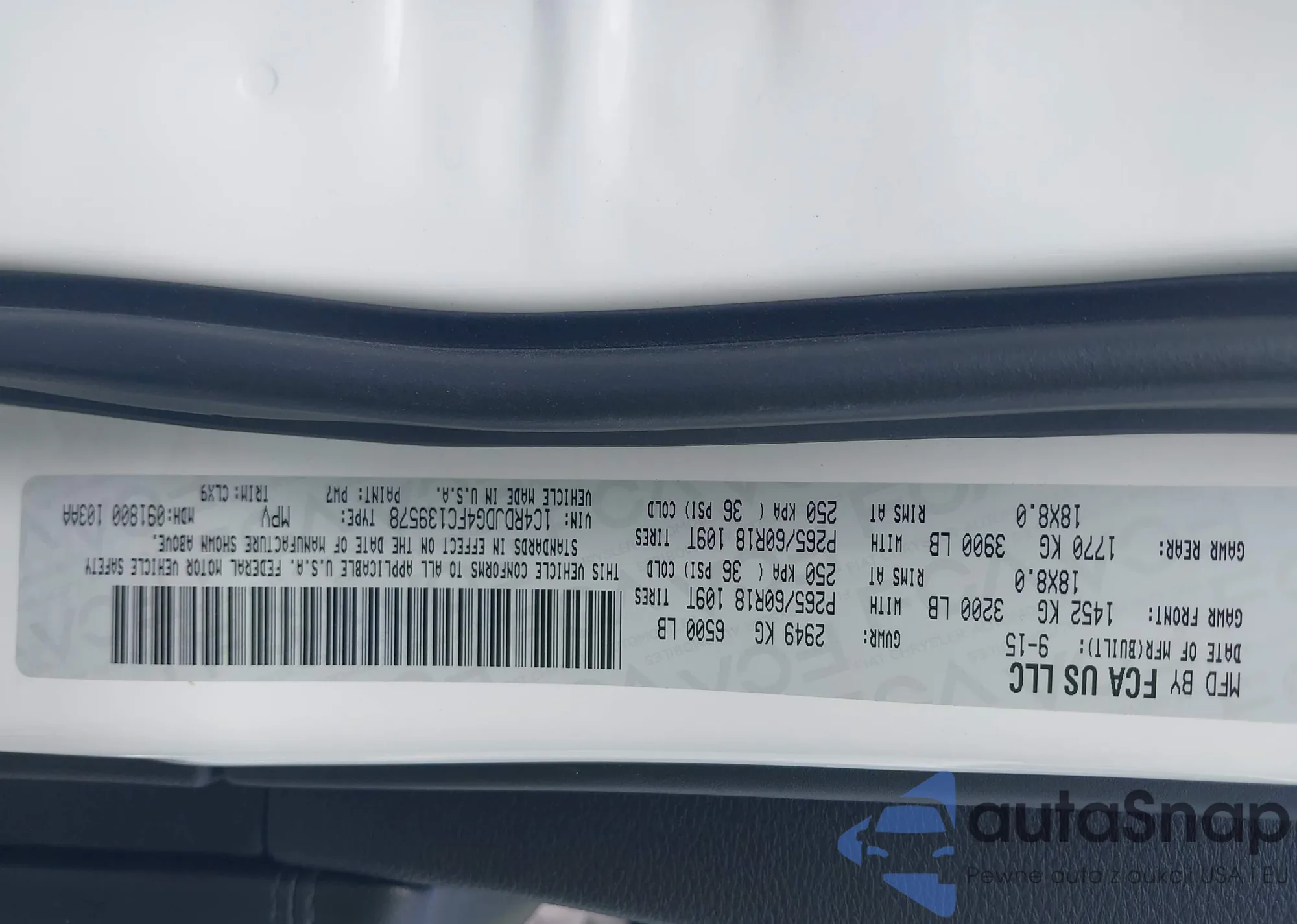 • VIN 1C4RDJDG4FC139578