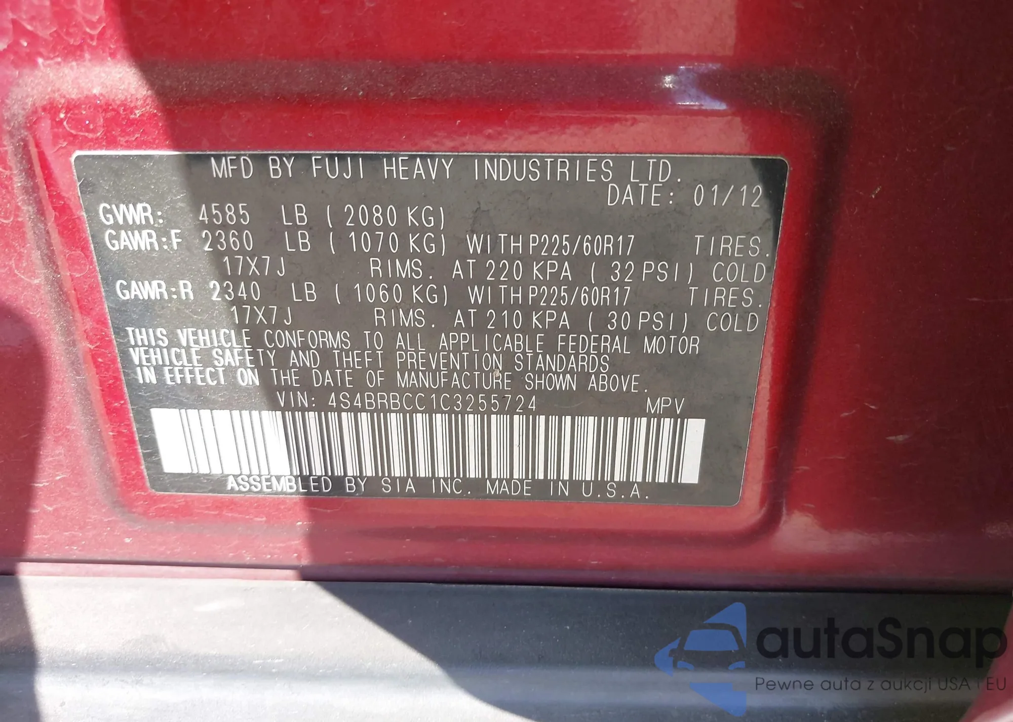 LOT: 43392942 VIN: 4S4BRBCC1C3255724